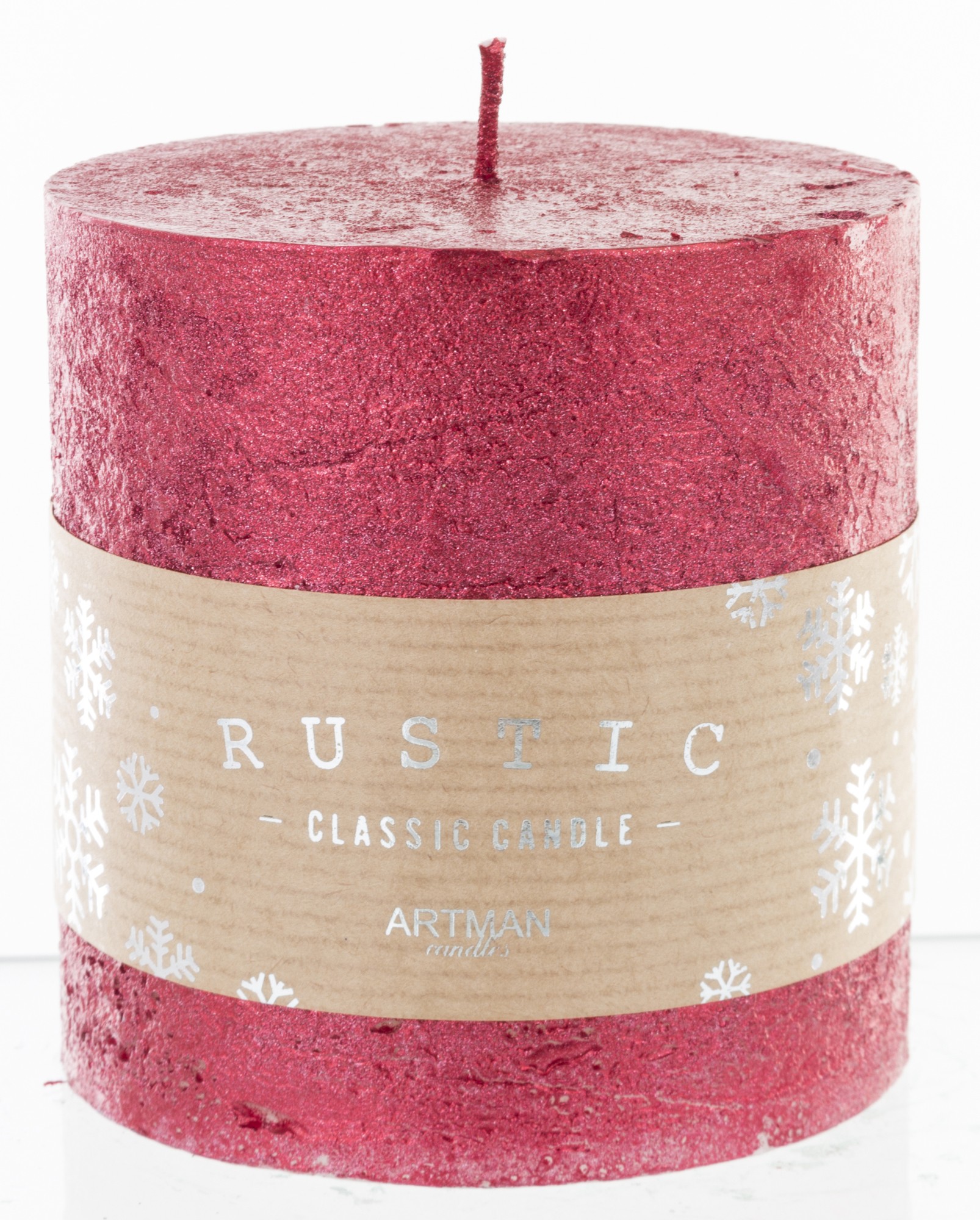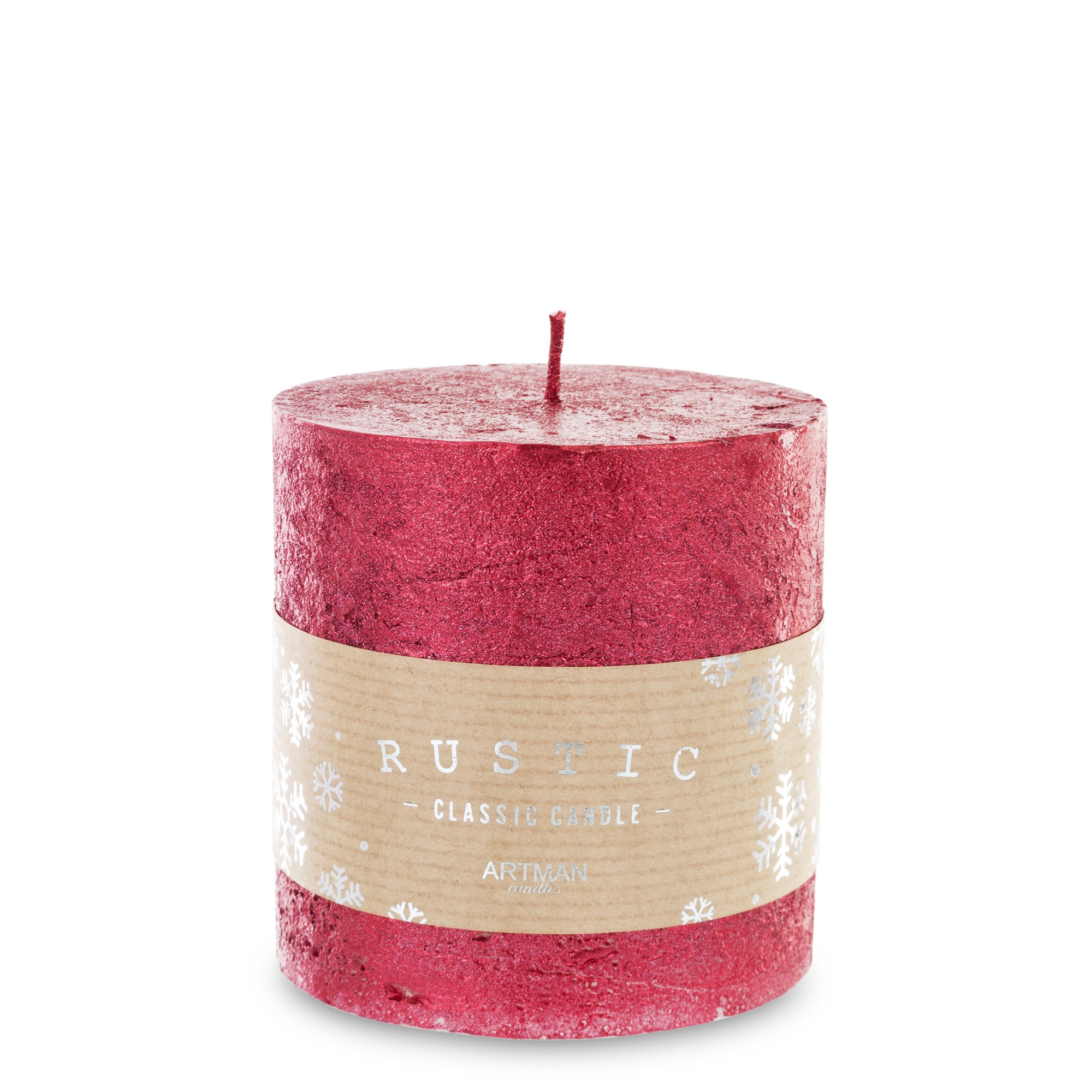 Červená sviečka Rustikálny kovový valec Malý priemer 9 cm