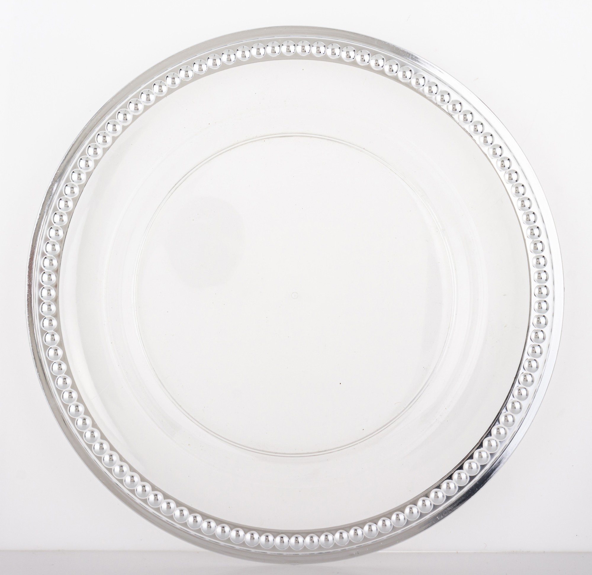 Dekoratívna biela podložka pod tanier so strieborným okrajom