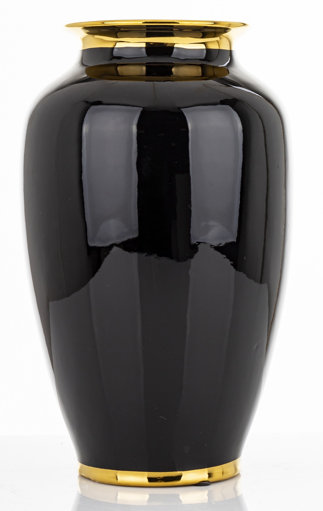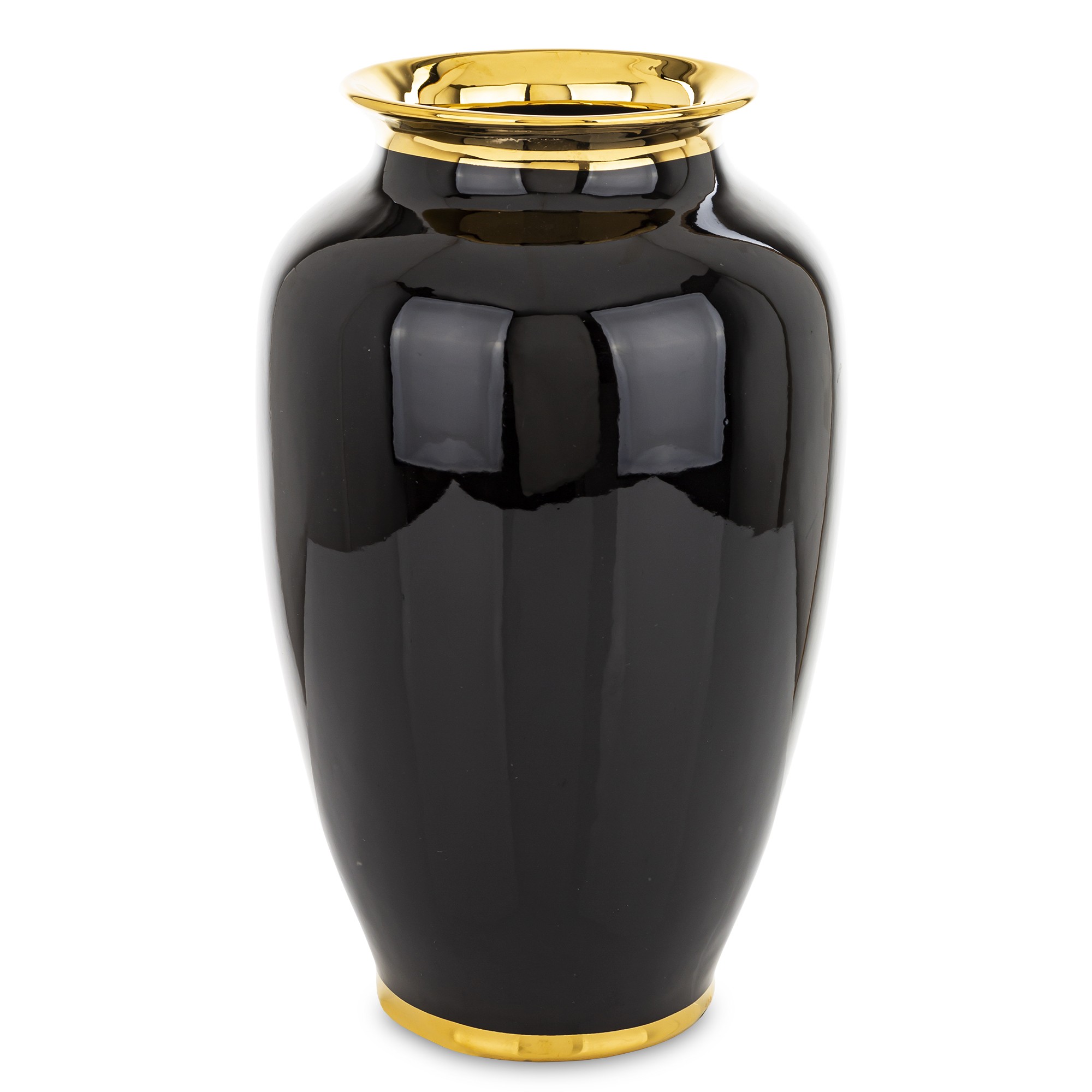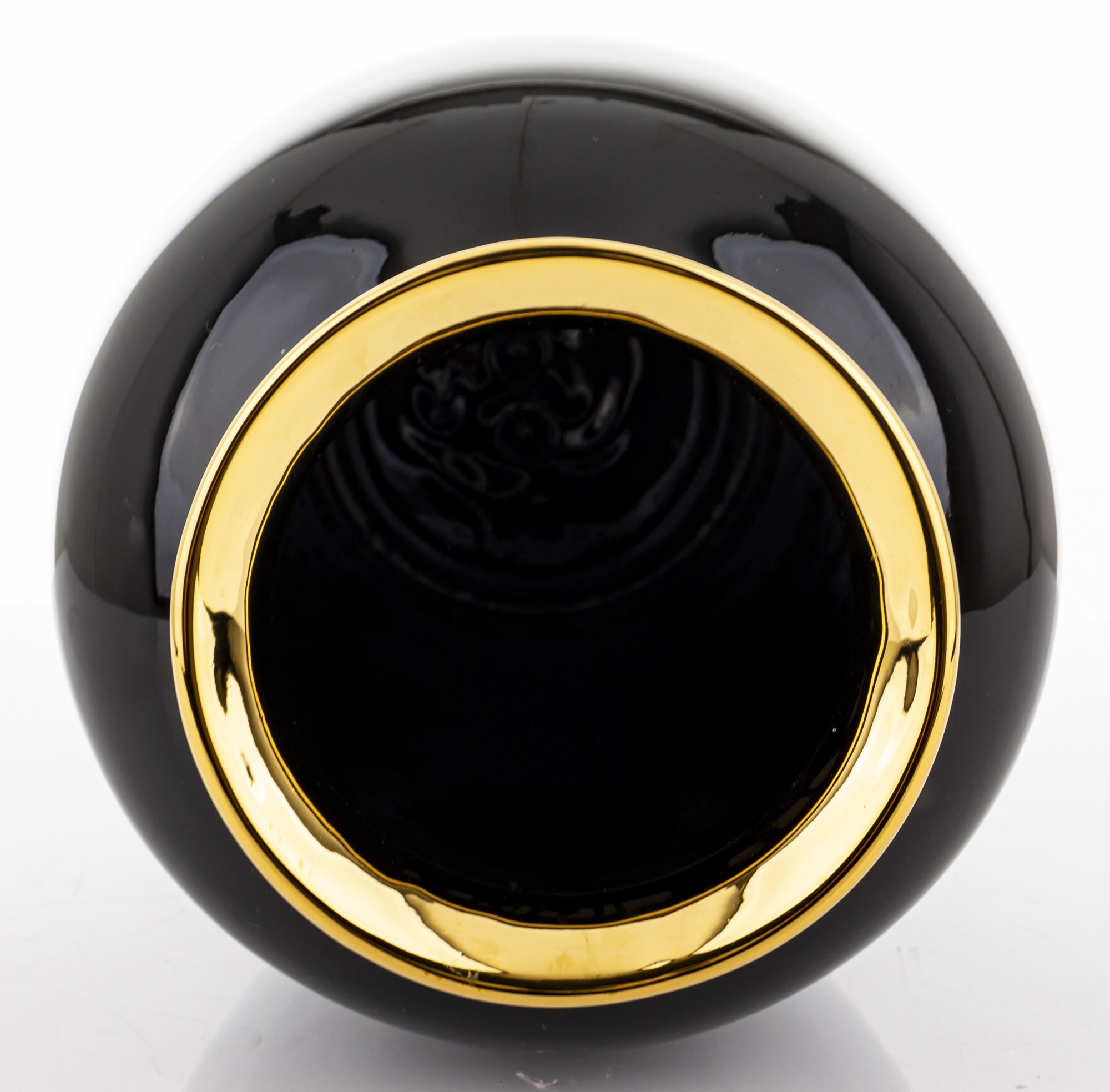 Dekoratívna čierna váza so zlatým okrajom