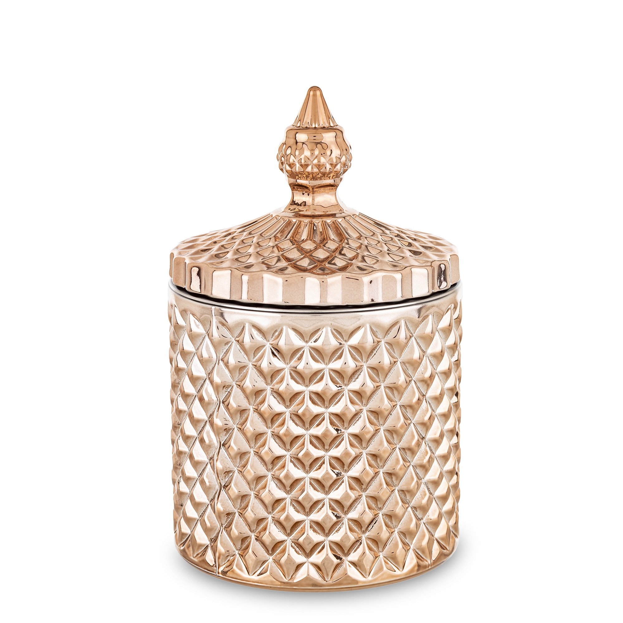 Luxusná zlatá dekoratívna nádoba s reliéfnym vzorom a elegantným viečkom. Perfektný doplnok na sladkosti, šperky či drobné dekorácie, ktorý okamžite dodá vášmu domovu glamour a eleganciu.