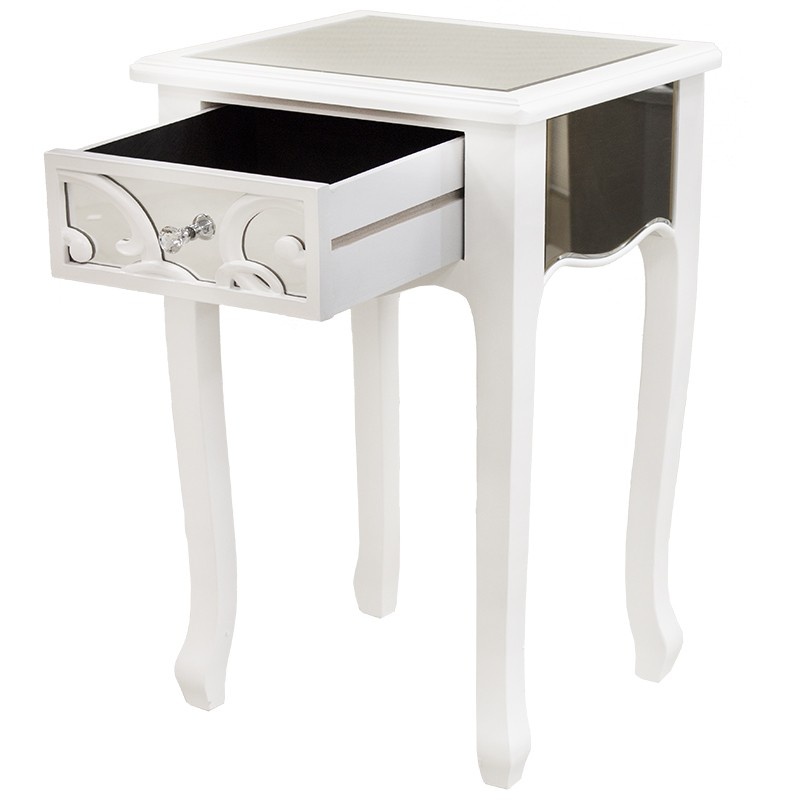 Elegantný biely odkladací stolík so šuflíkom