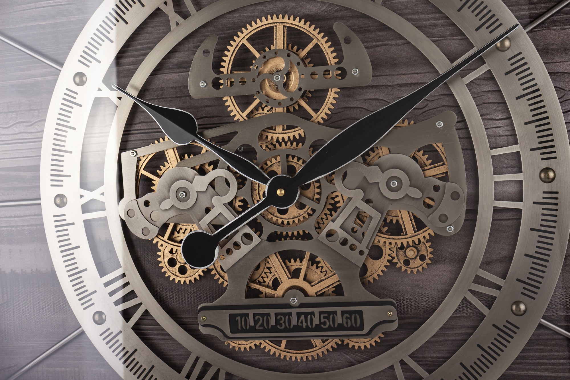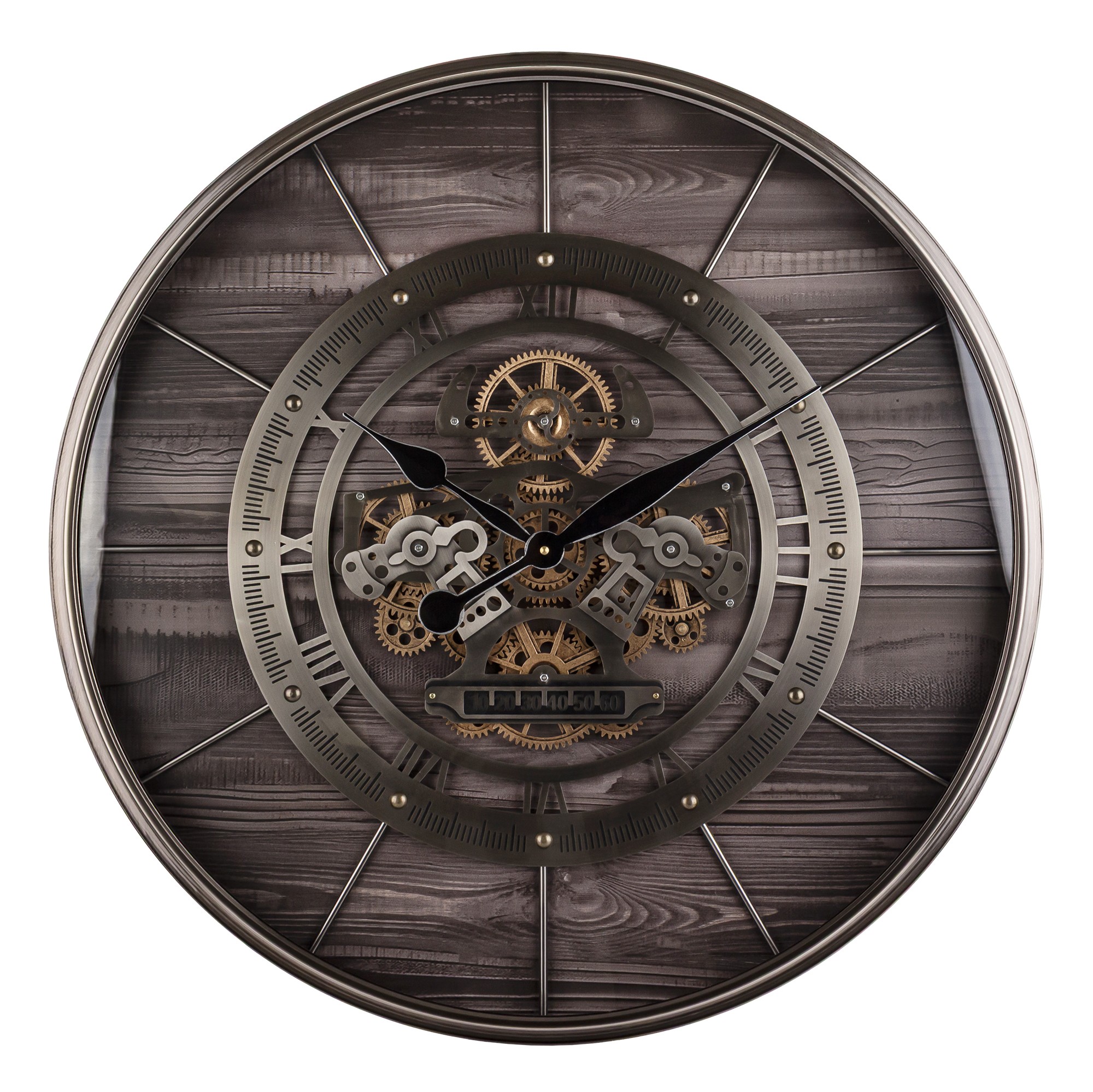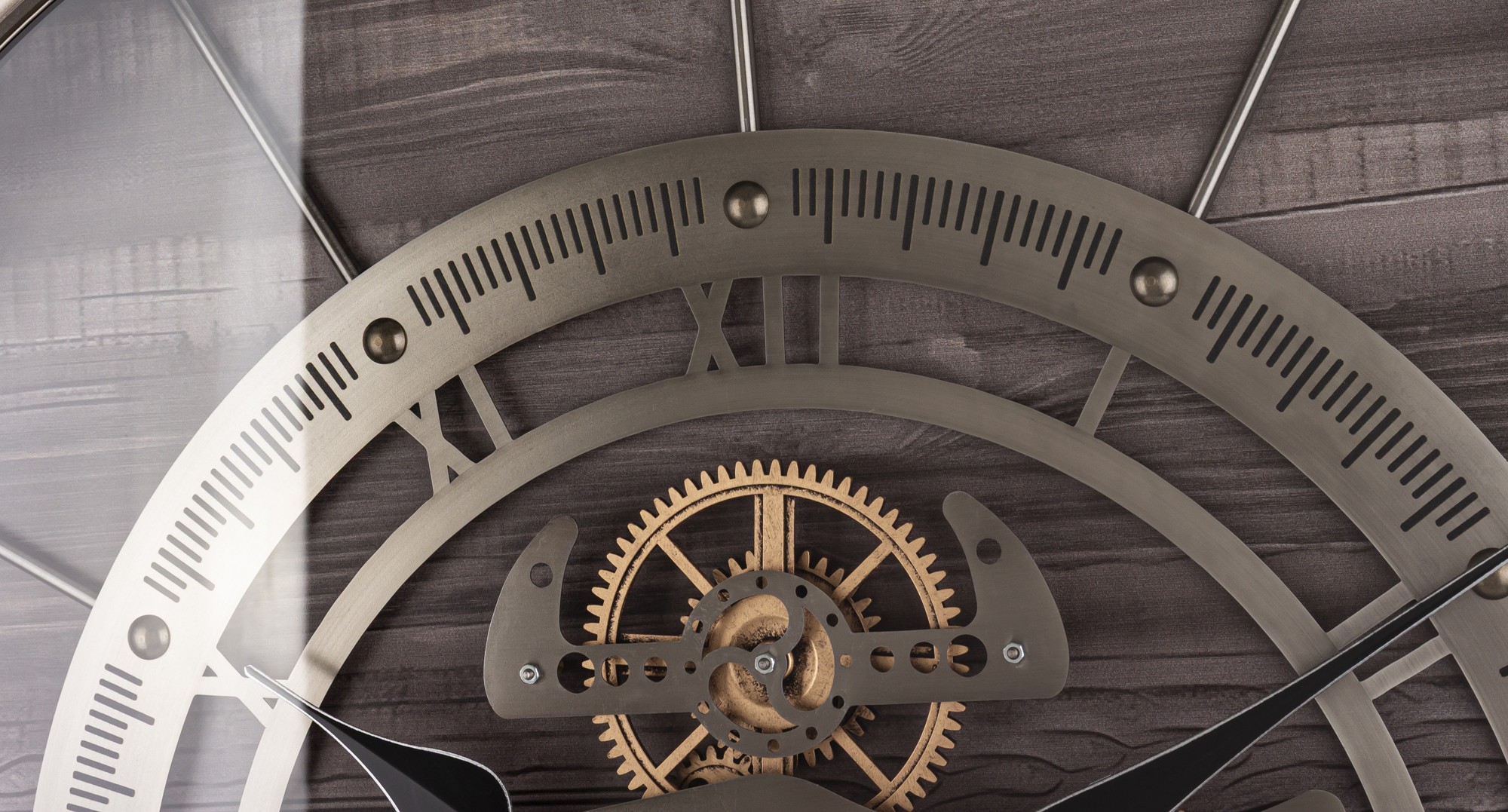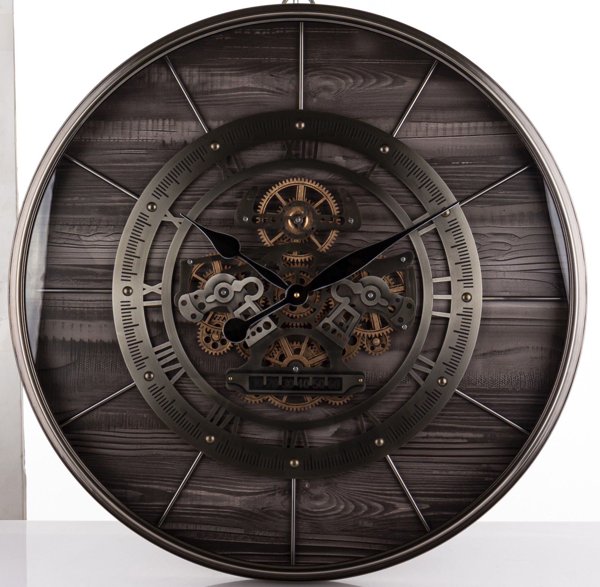 Kombinácia tmavého dreveného pozadia, kovovým prvkom a dekoratívnych mechanických detailov dodáva hodinám luxusný a zároveň robustný charakter. Vďaka tomu sa perfektne hodia do obývačky, kancelárie, loftového bytu, reštaurácie alebo moderného pracovného priestoru.