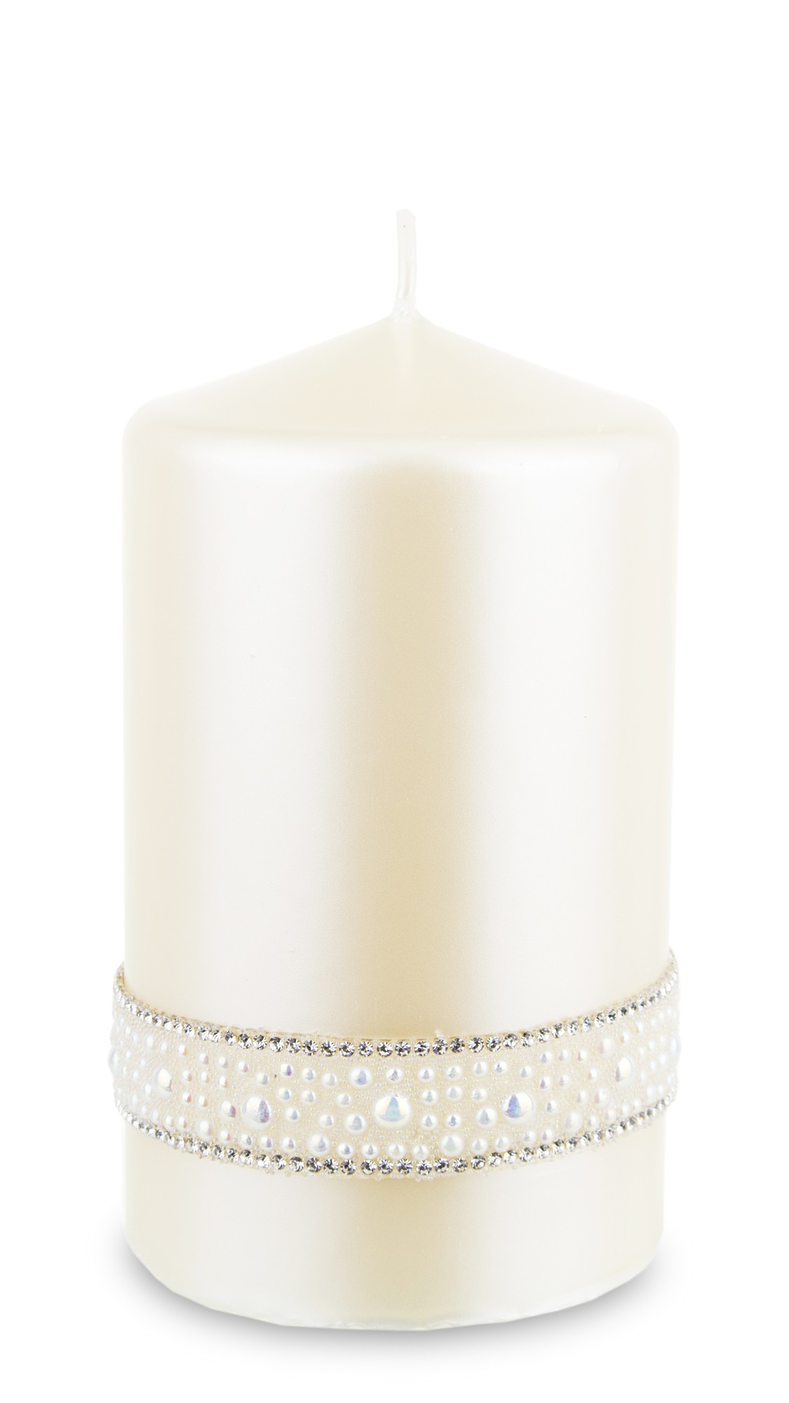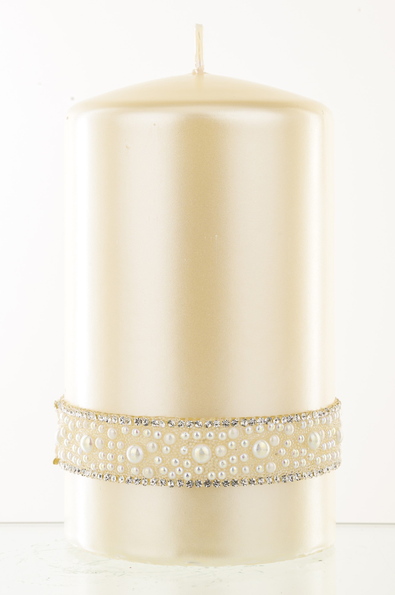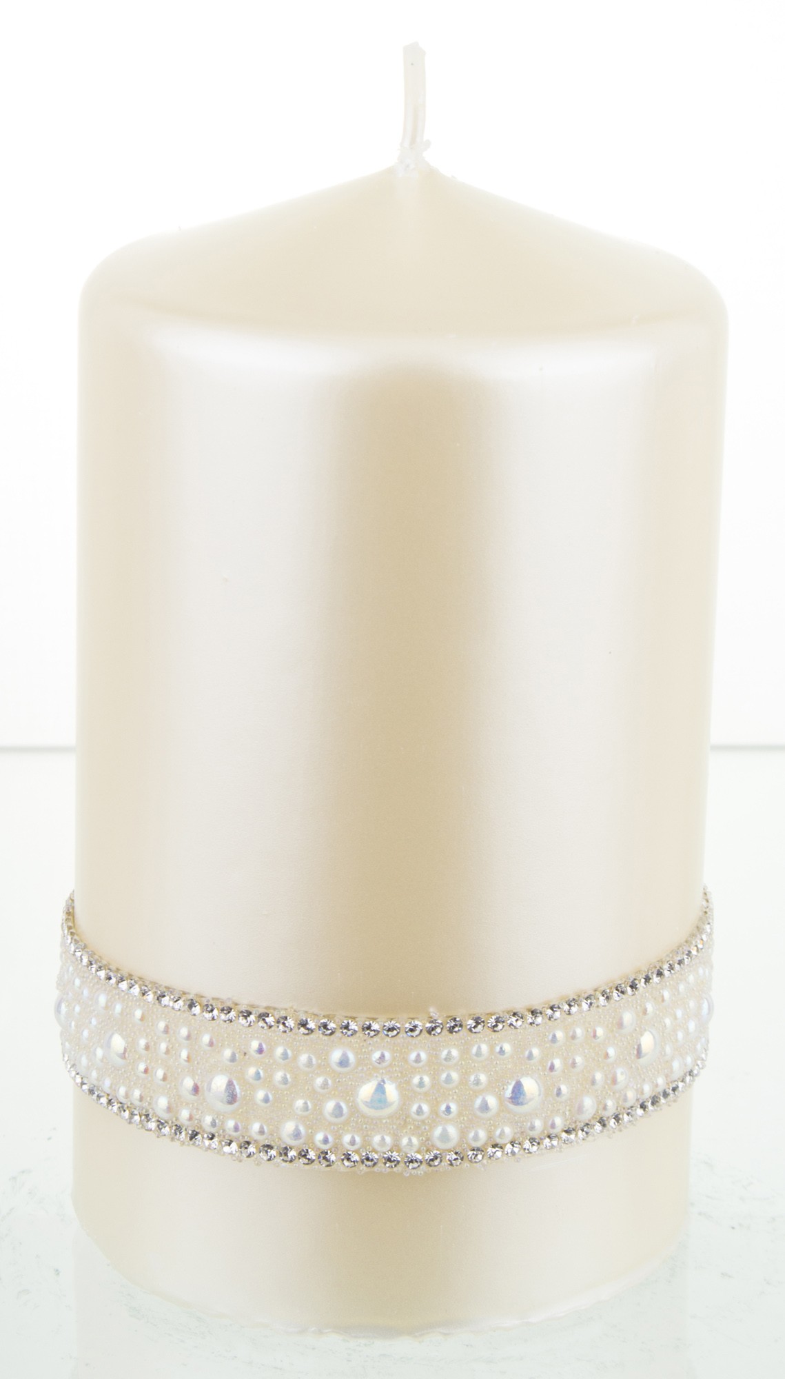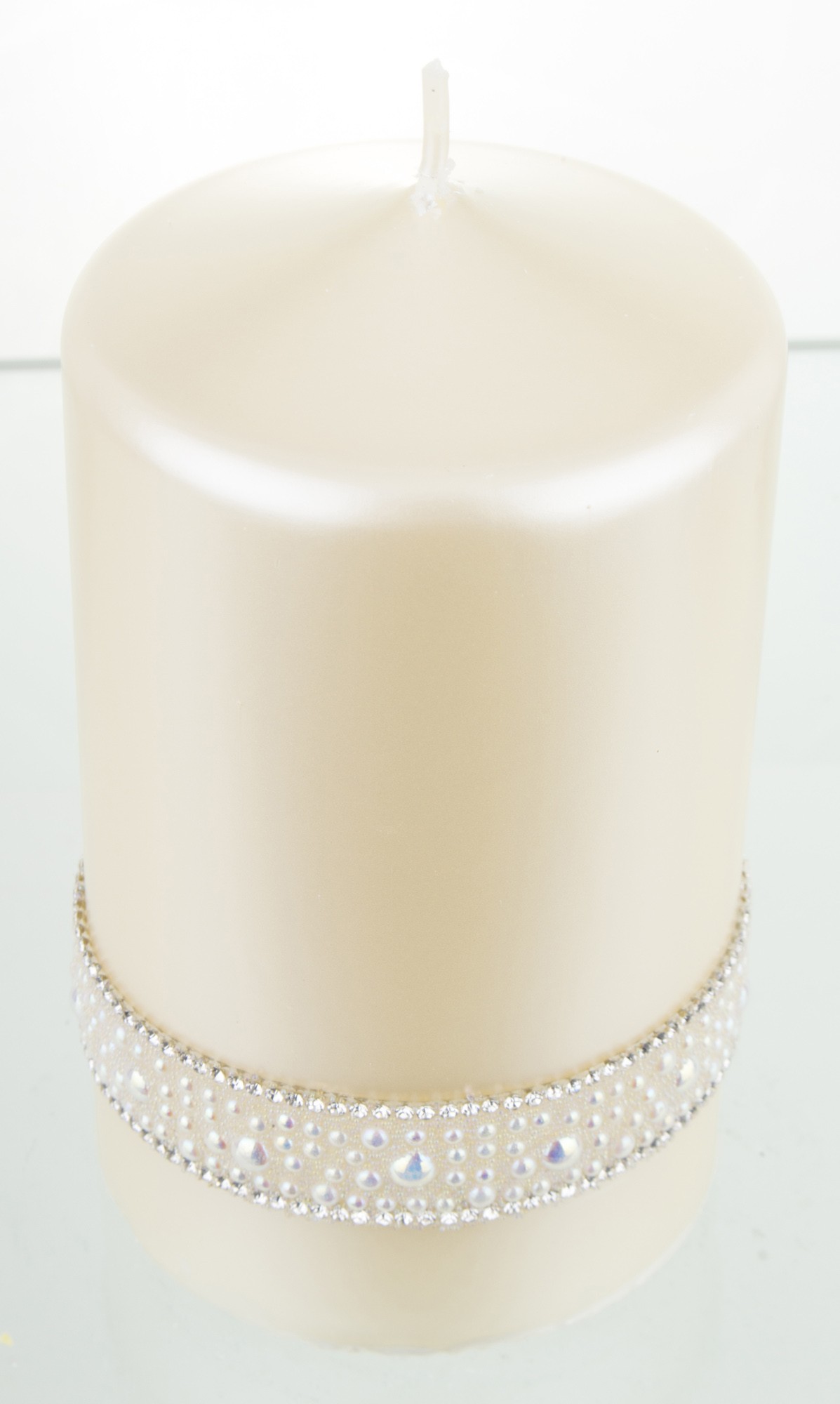 Krémová sviečka, krištáľová opálová perlová valcová stredná priemer 8 cm