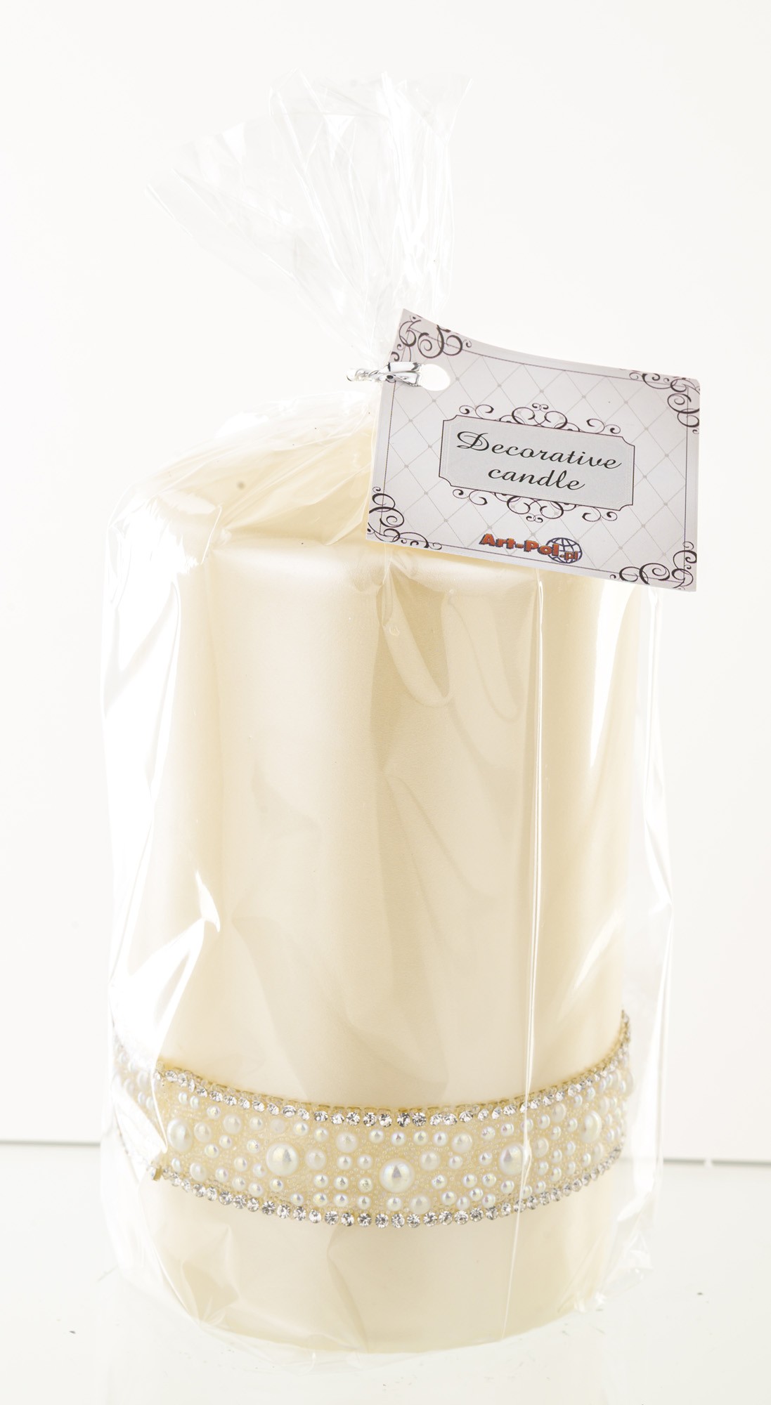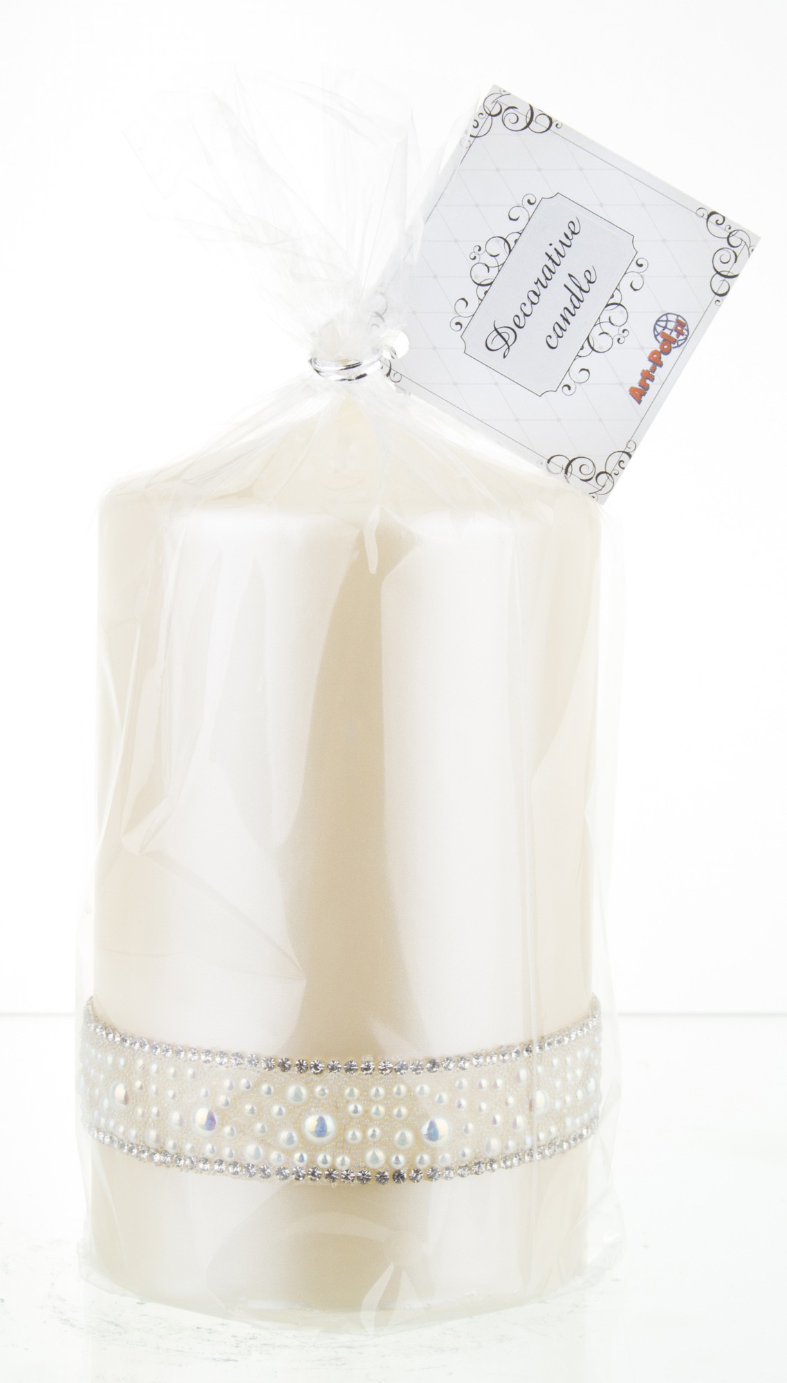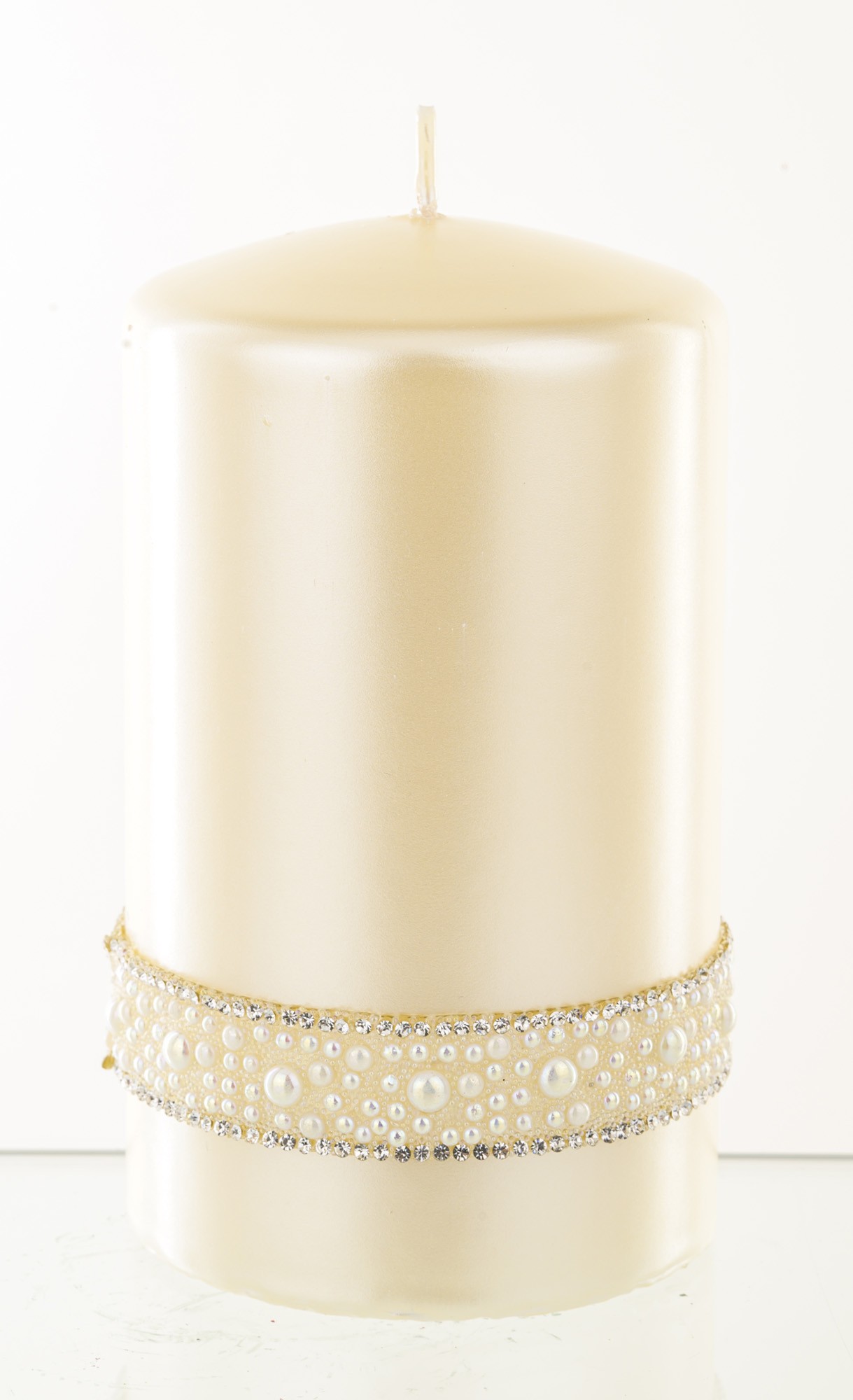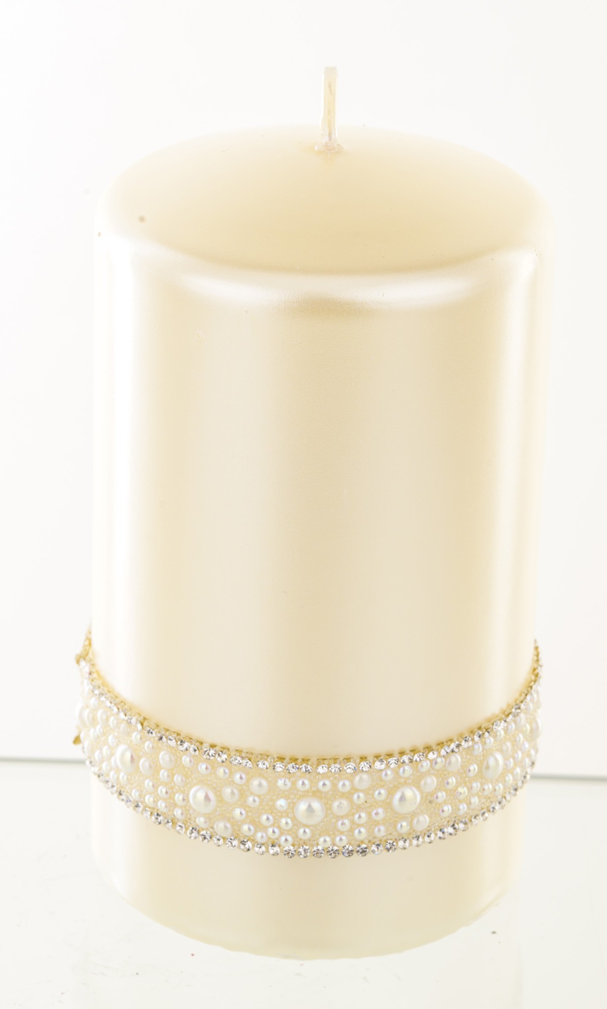 Krémová sviečka, krištáľová opálová perlová valcová stredná priemer 8 cm