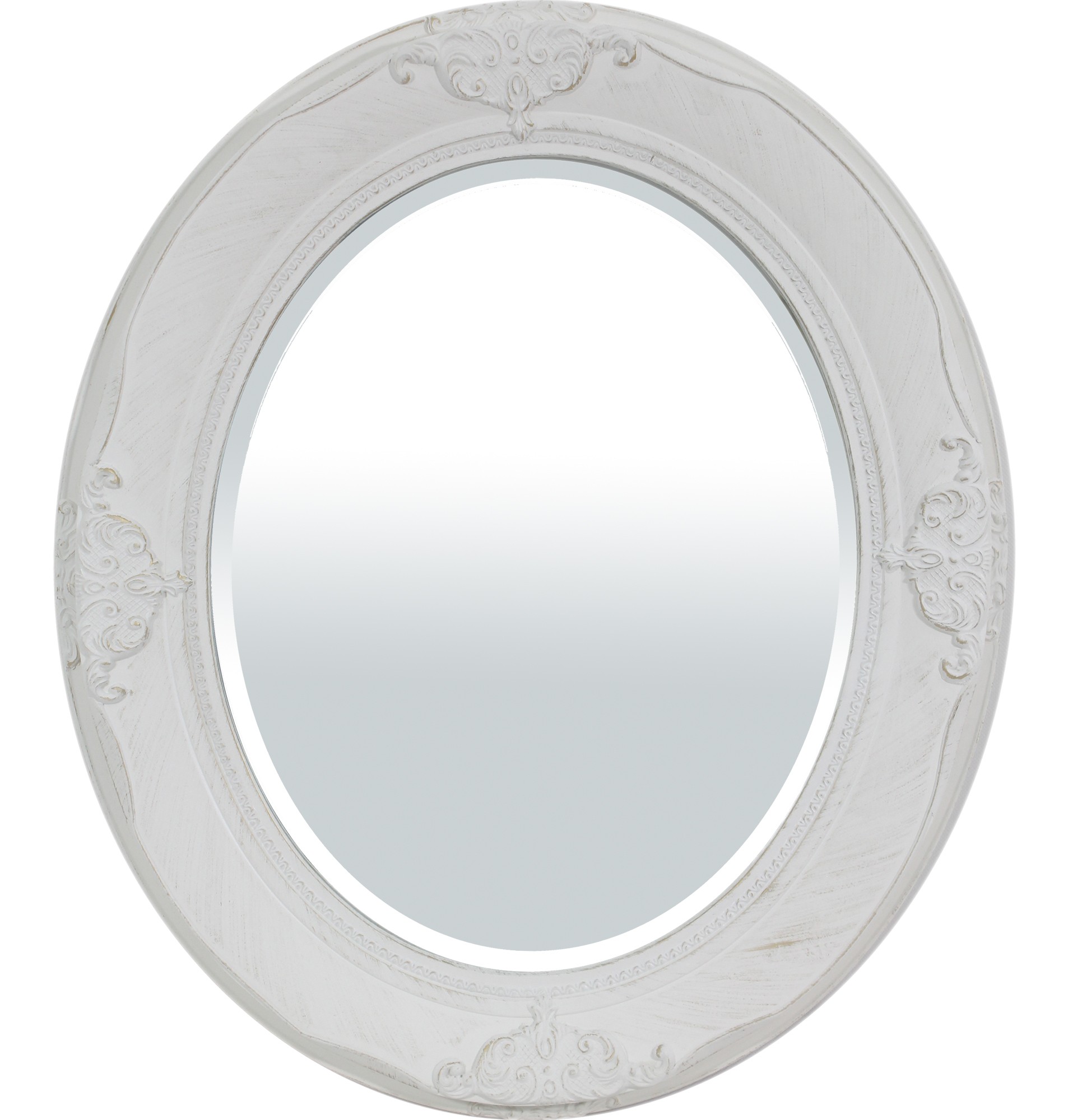 Oválne zrkadlo s hrubým bielym ozdobným rámom