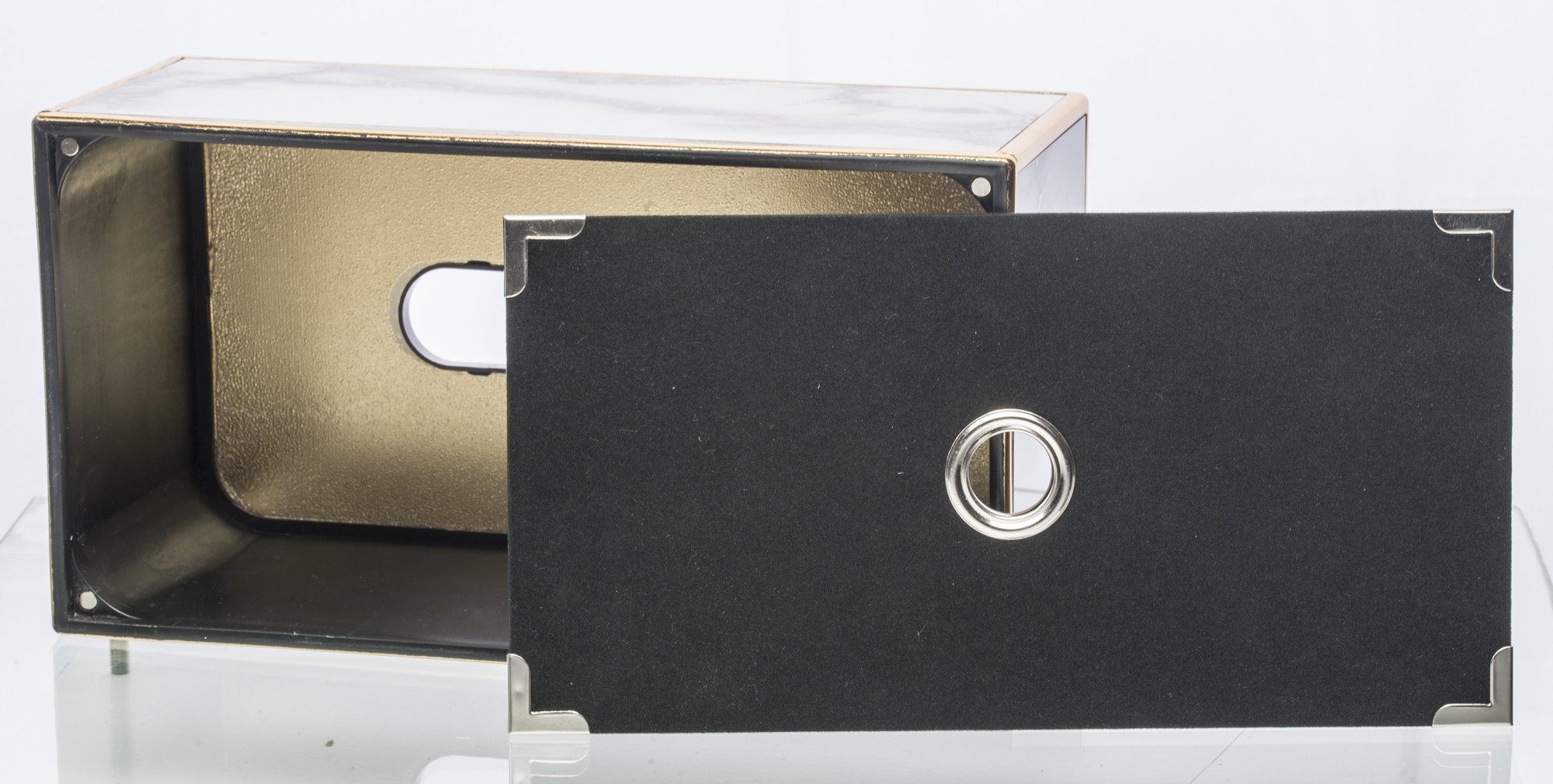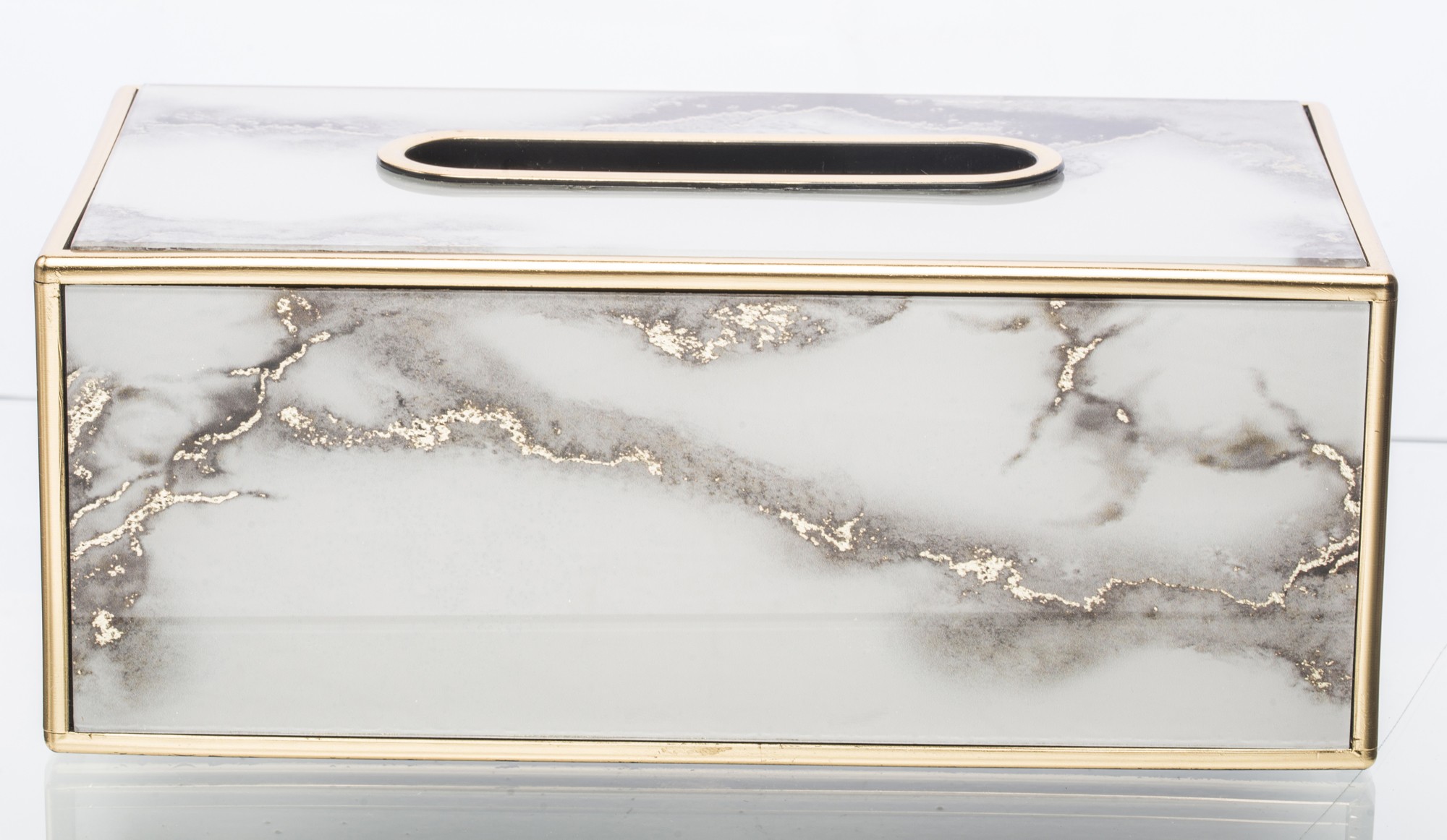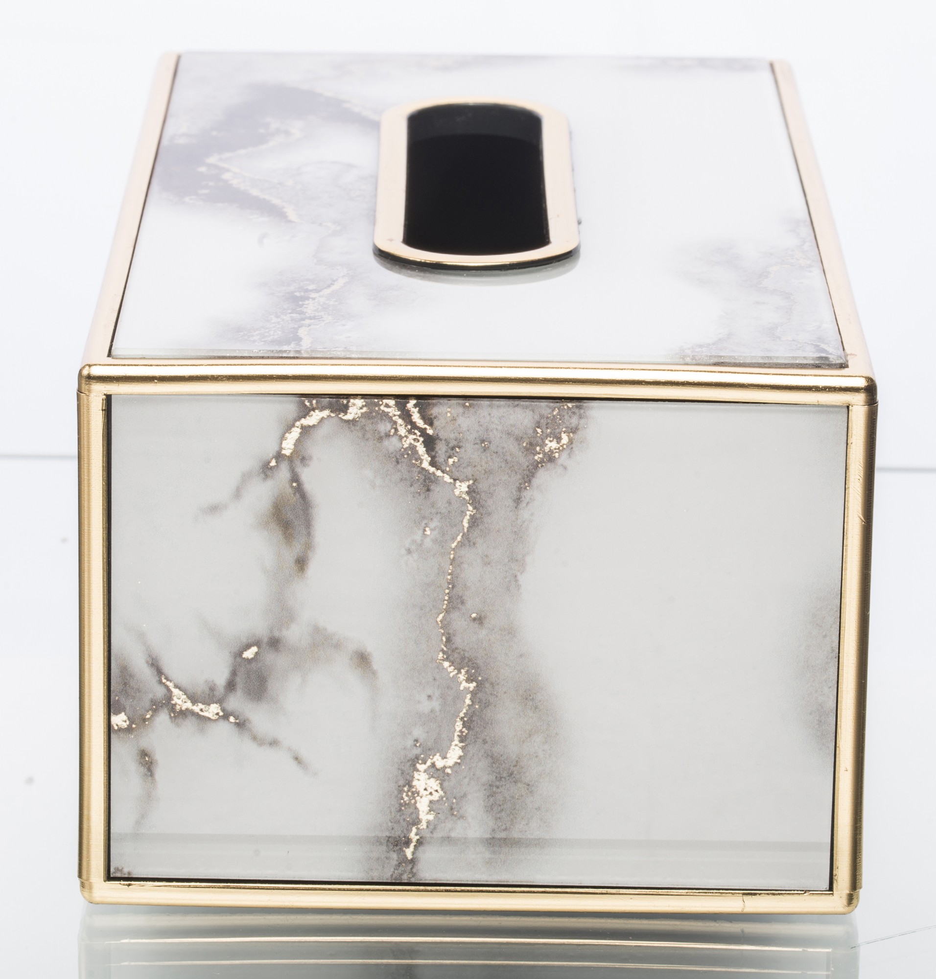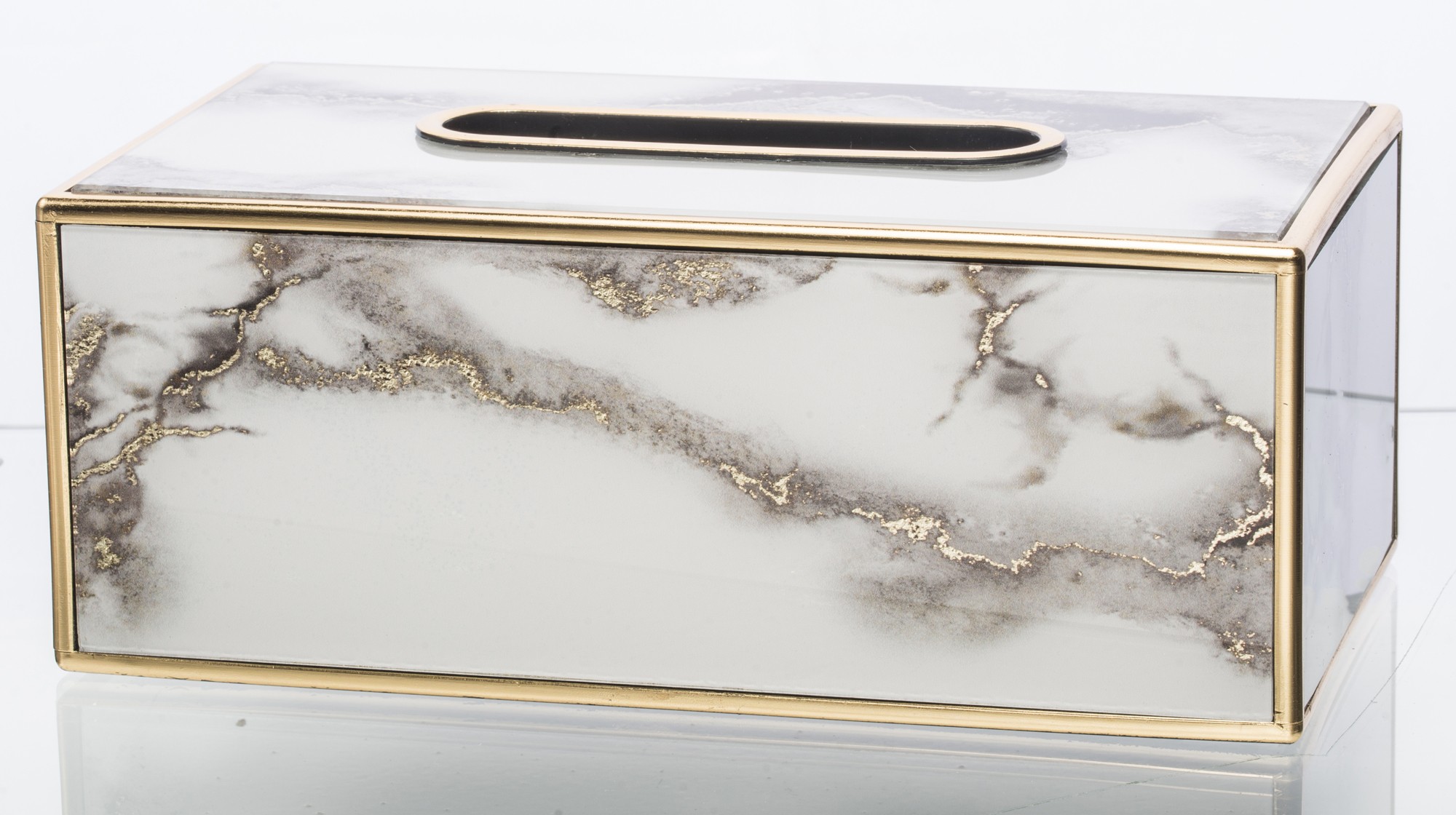 Śtýlová krabička na servítky v modernom mramorovom dizajne so zlatými detailami, ktorá elegantne doplní vašu obývačku, kuchyňu či nočný stolík. Praktický a zároveň luxusný doplnok každého interiéru.