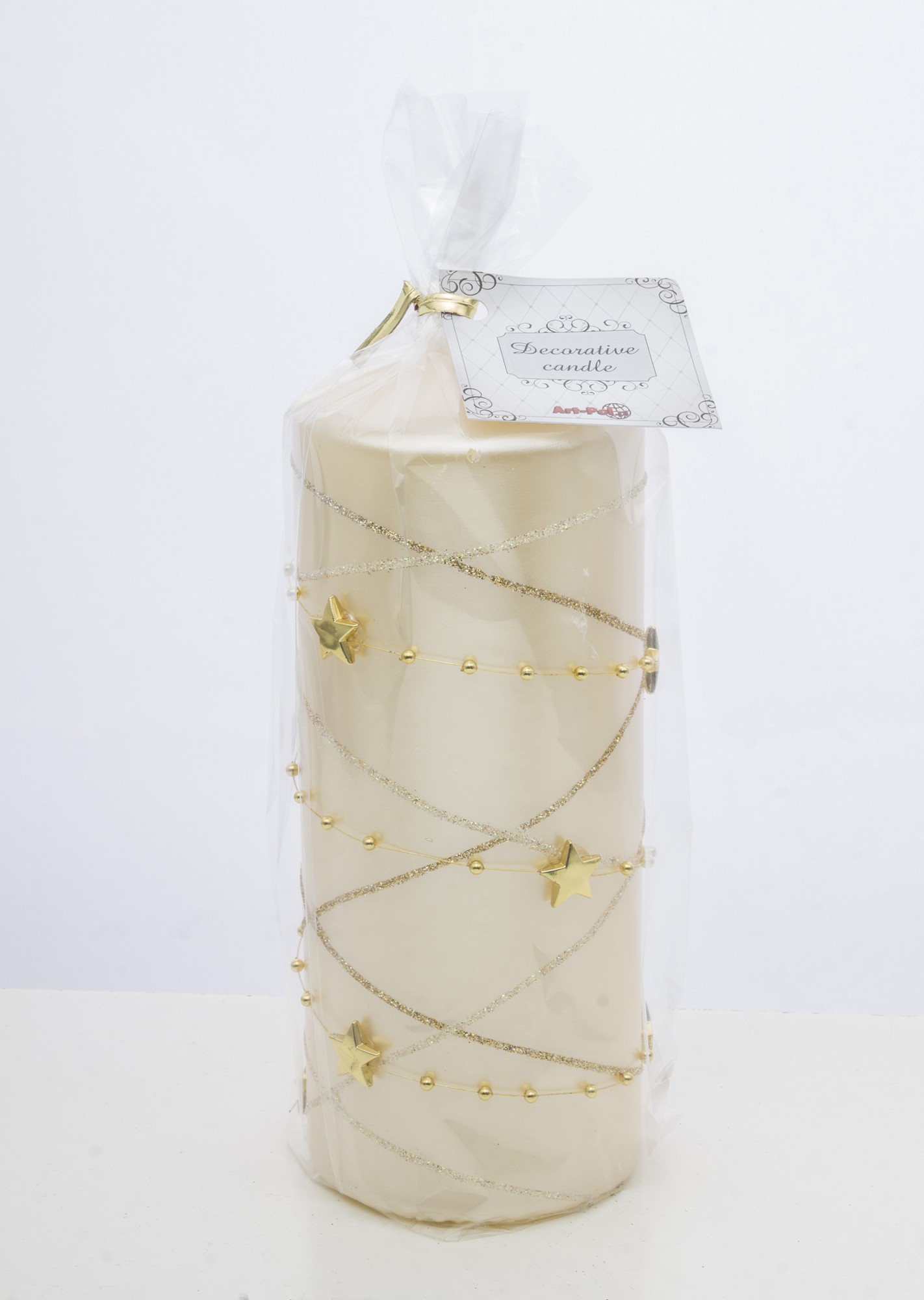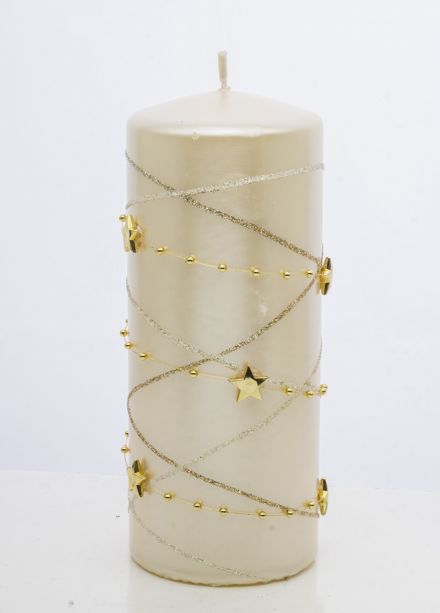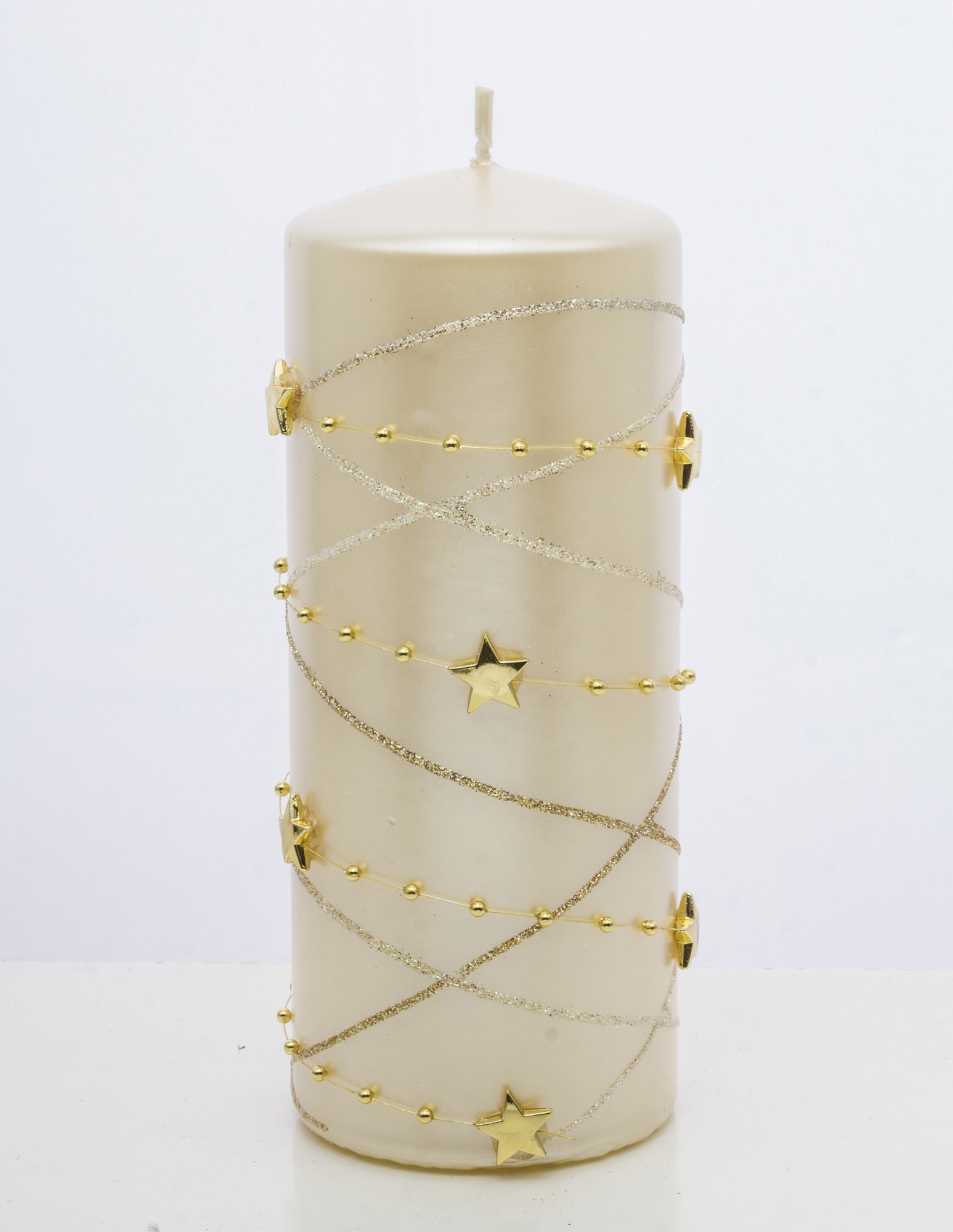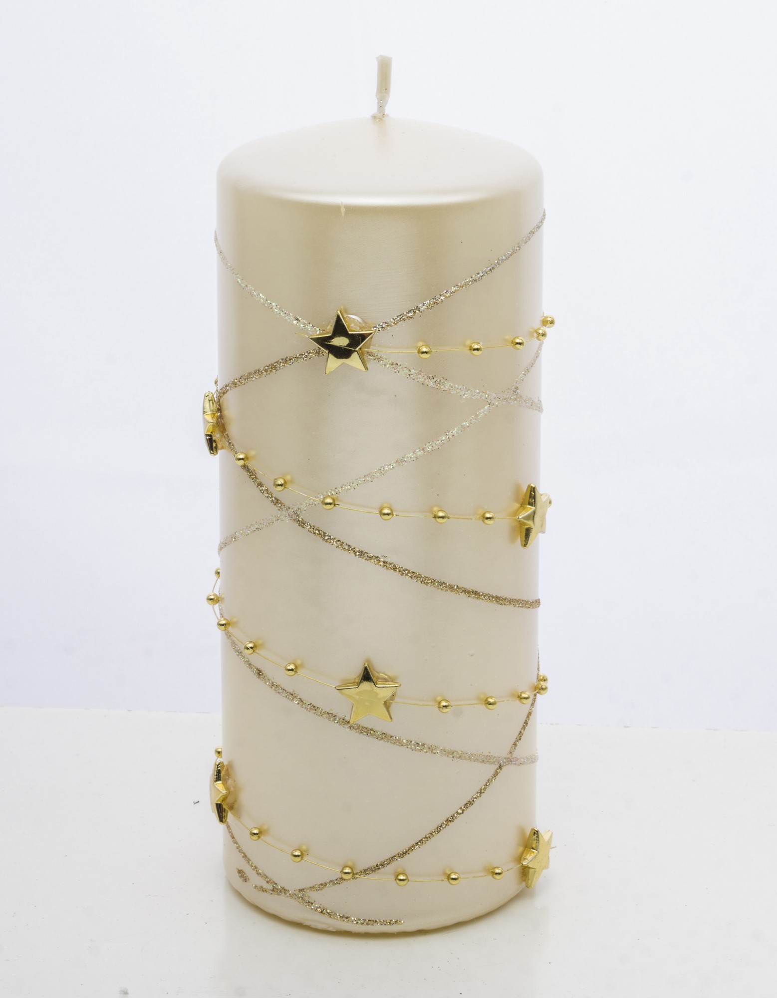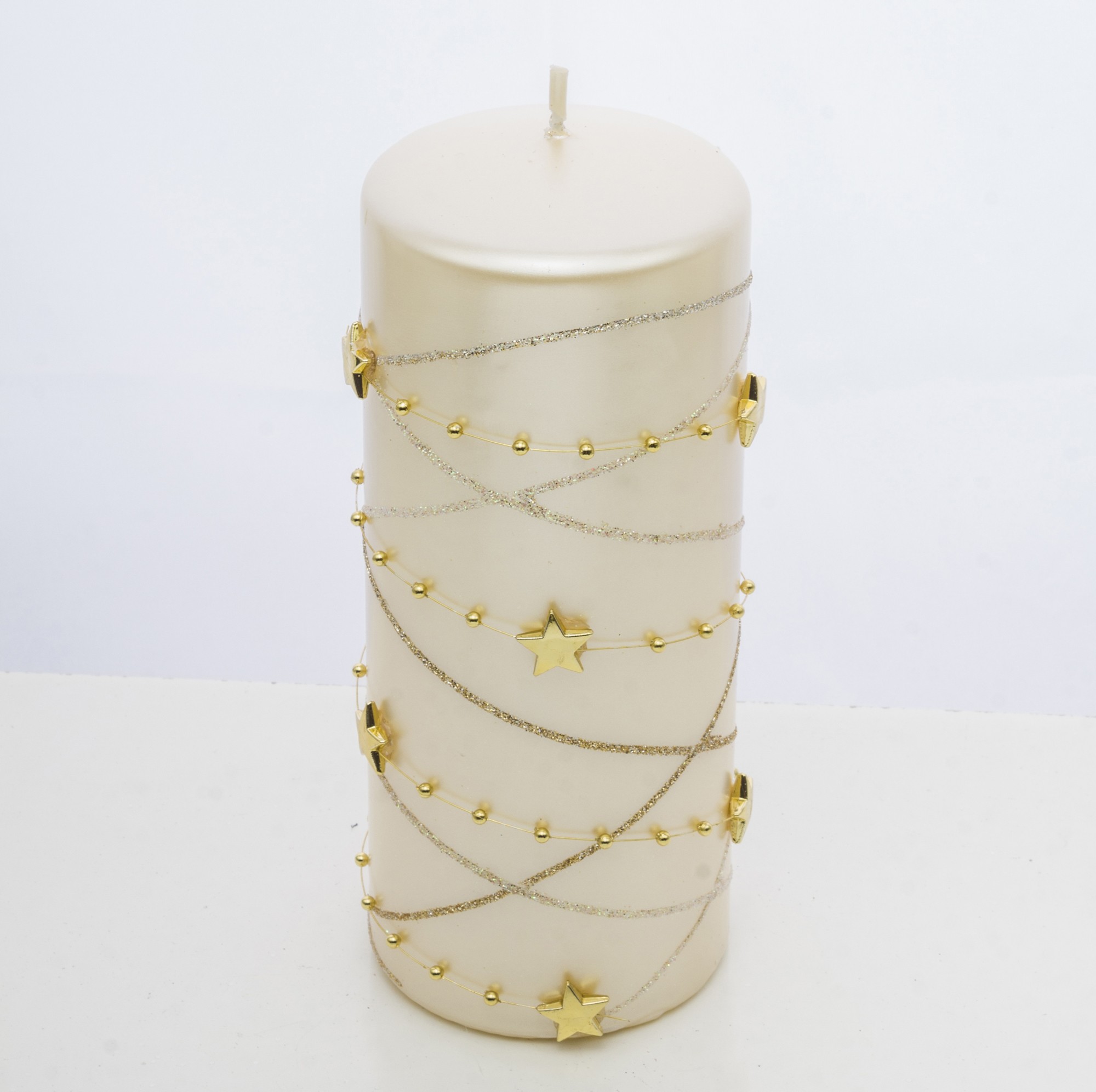 Ozdobná krémová sviečka s hviezdami – Veľká