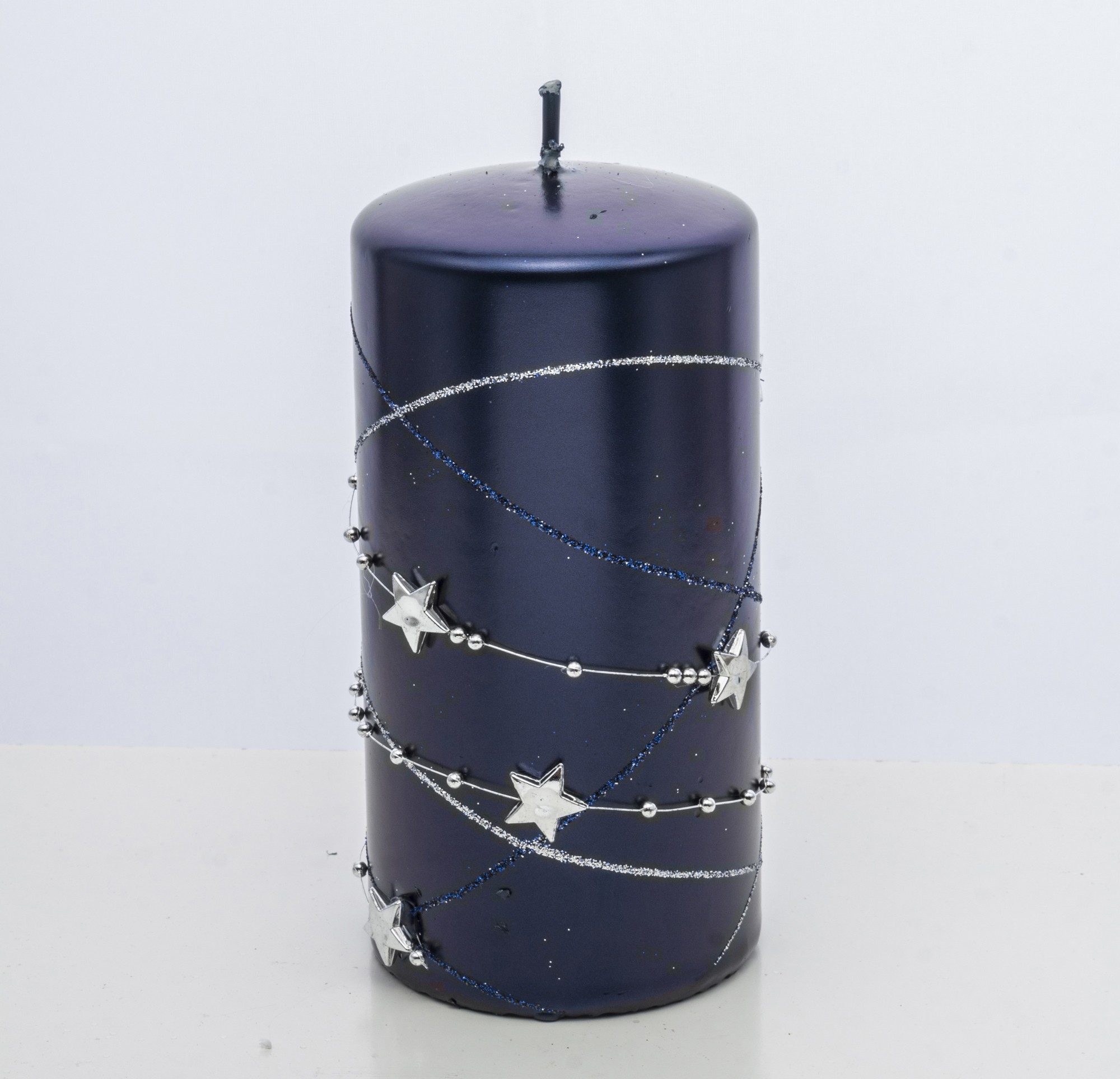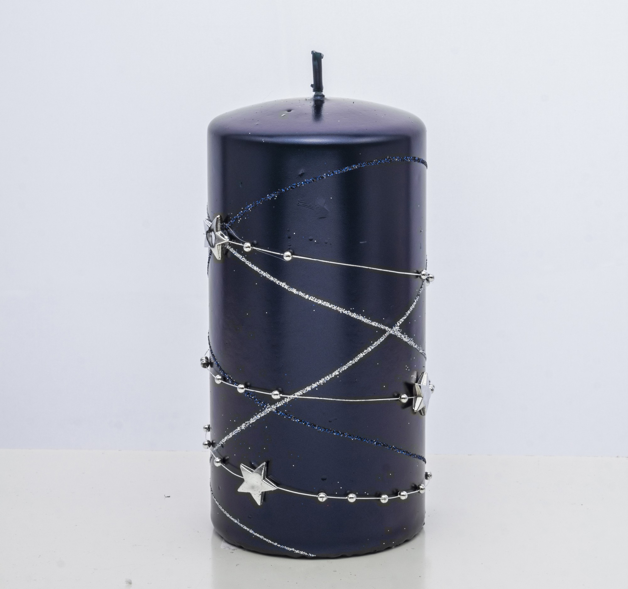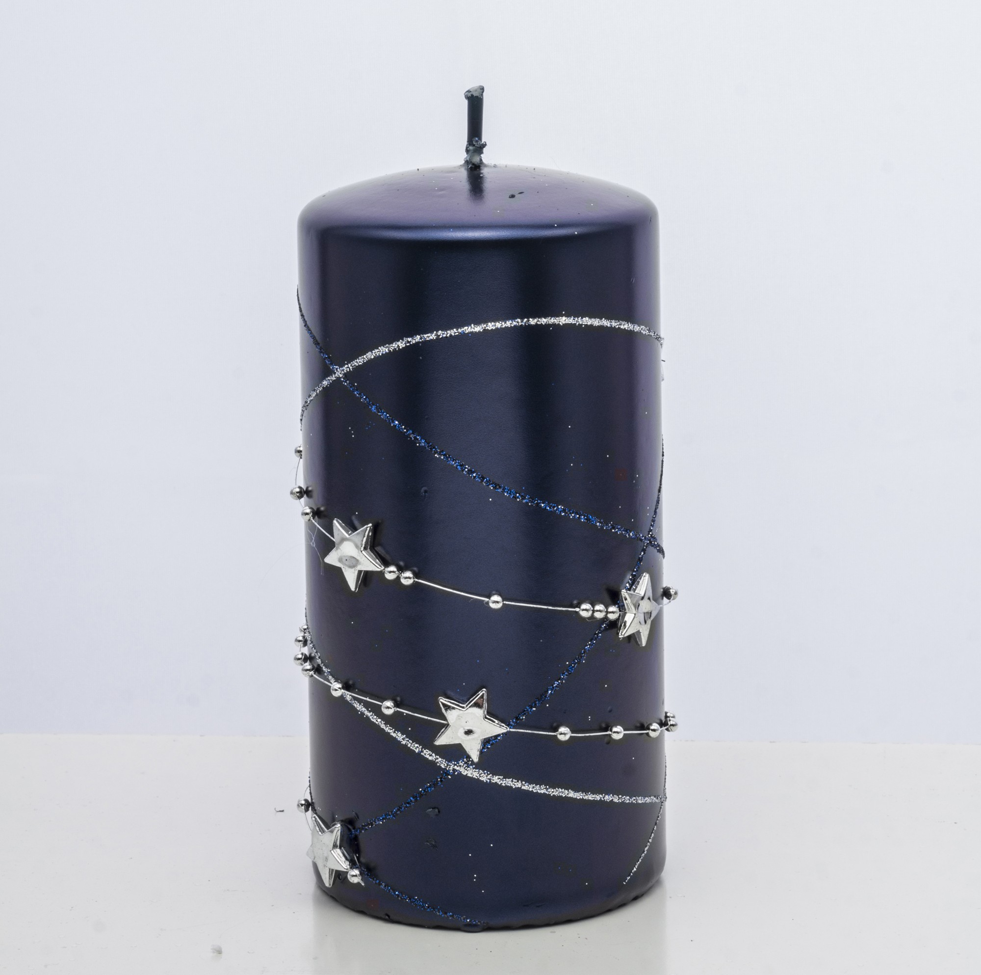 Ozdobná modrá sviečka s hviezdami – Stredná