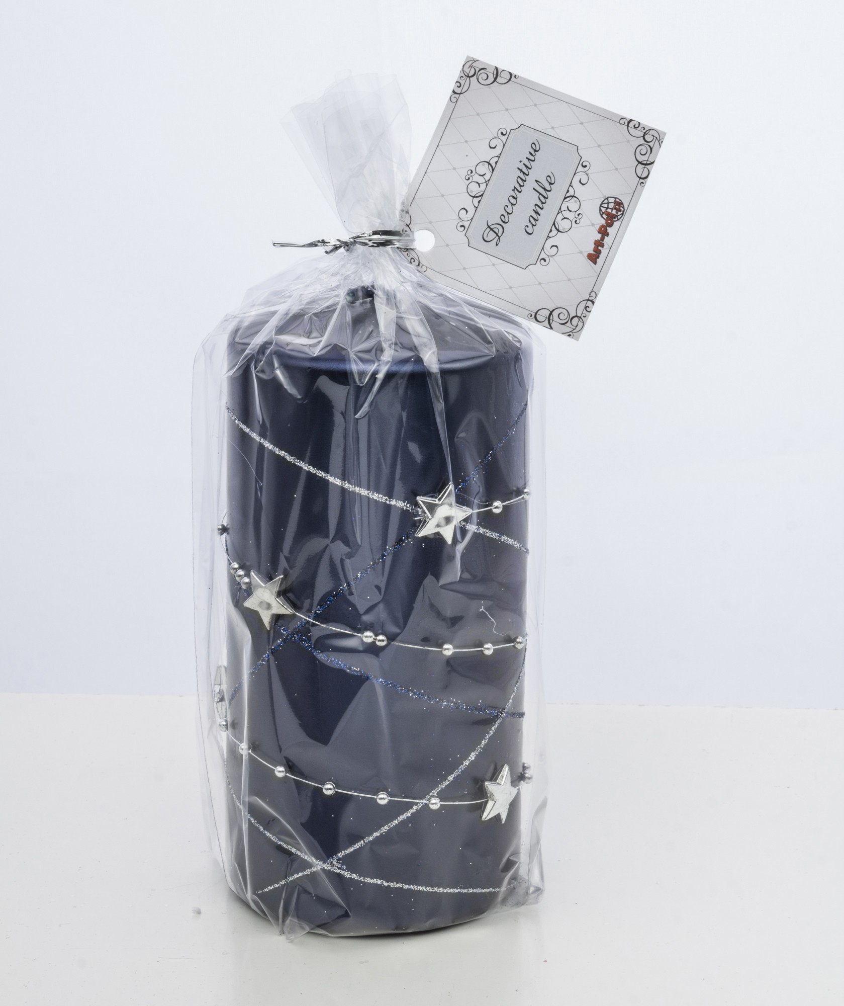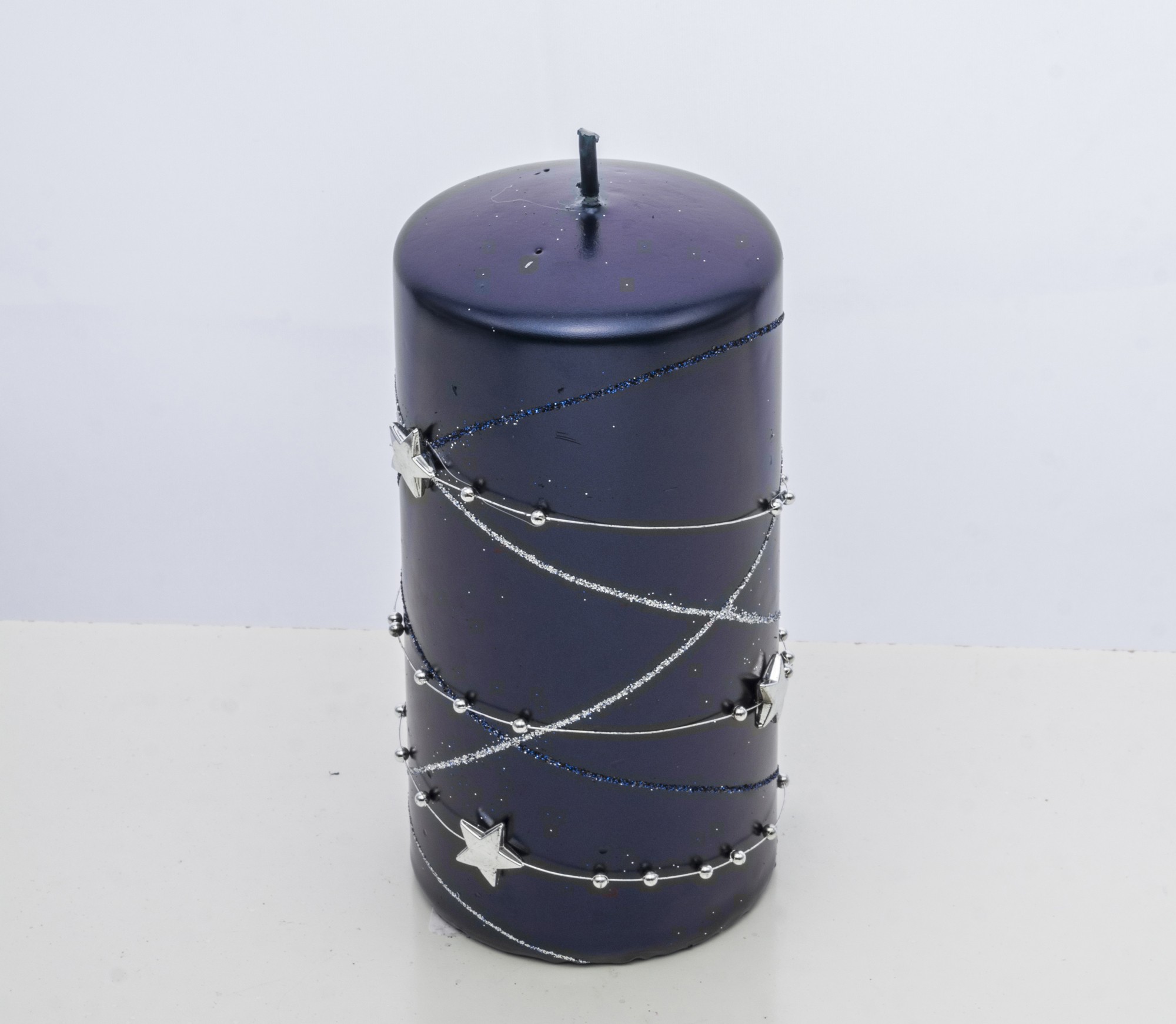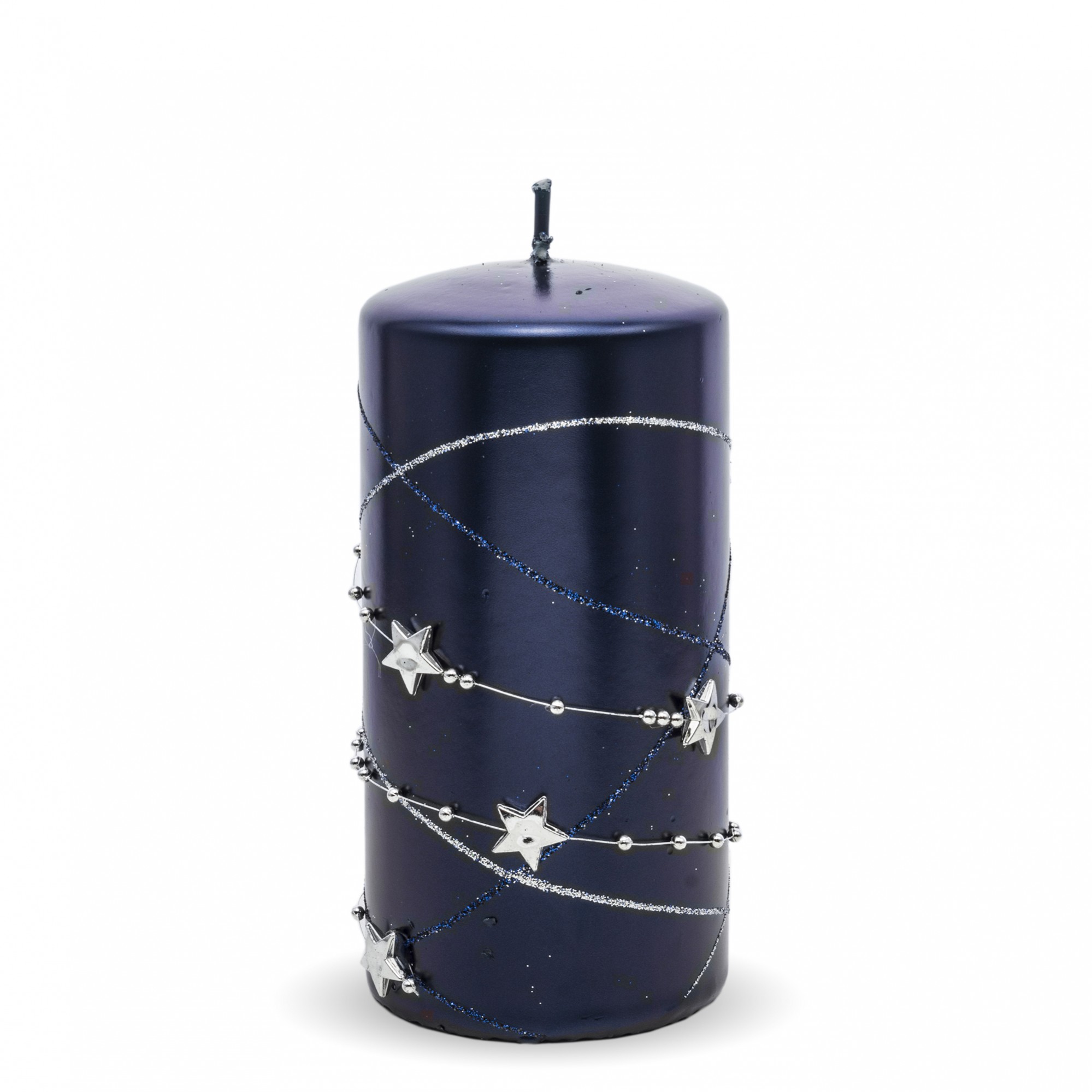 Ozdobná modrá sviečka s hviezdami – Stredná