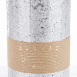 Strieborná sviečka rustikálna metalická stredná valcová priemer 9 cm