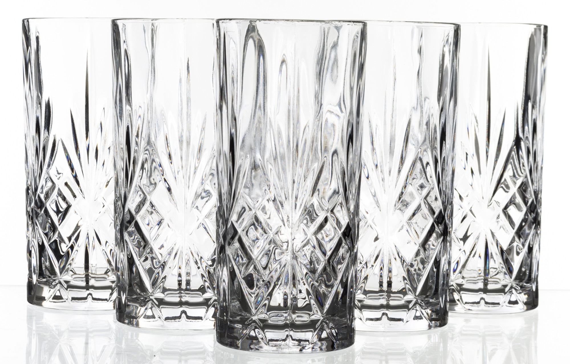 Doprajte si štýlové servírovanie nápojov so sadou vysokých pohárov Melodia. Nadčasový brúsený vzor odráža svetlo a dodáva každému nápoju luxusný vzhľad. Poháre sú ideálne na vodu, džús, limonádu, miešané drinky aj long drinky.