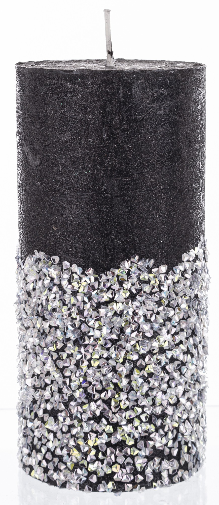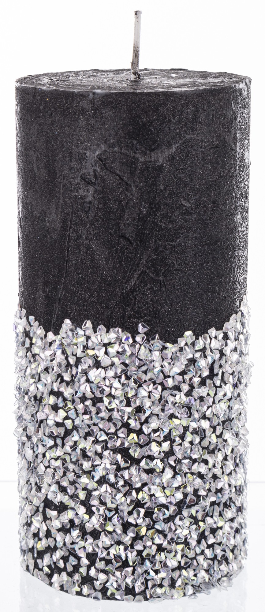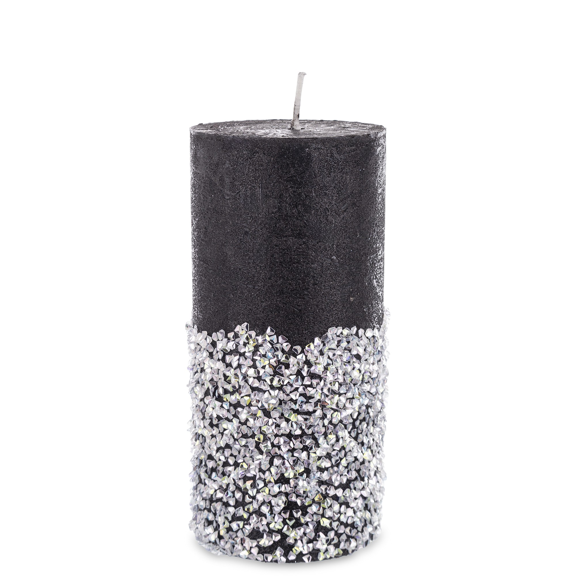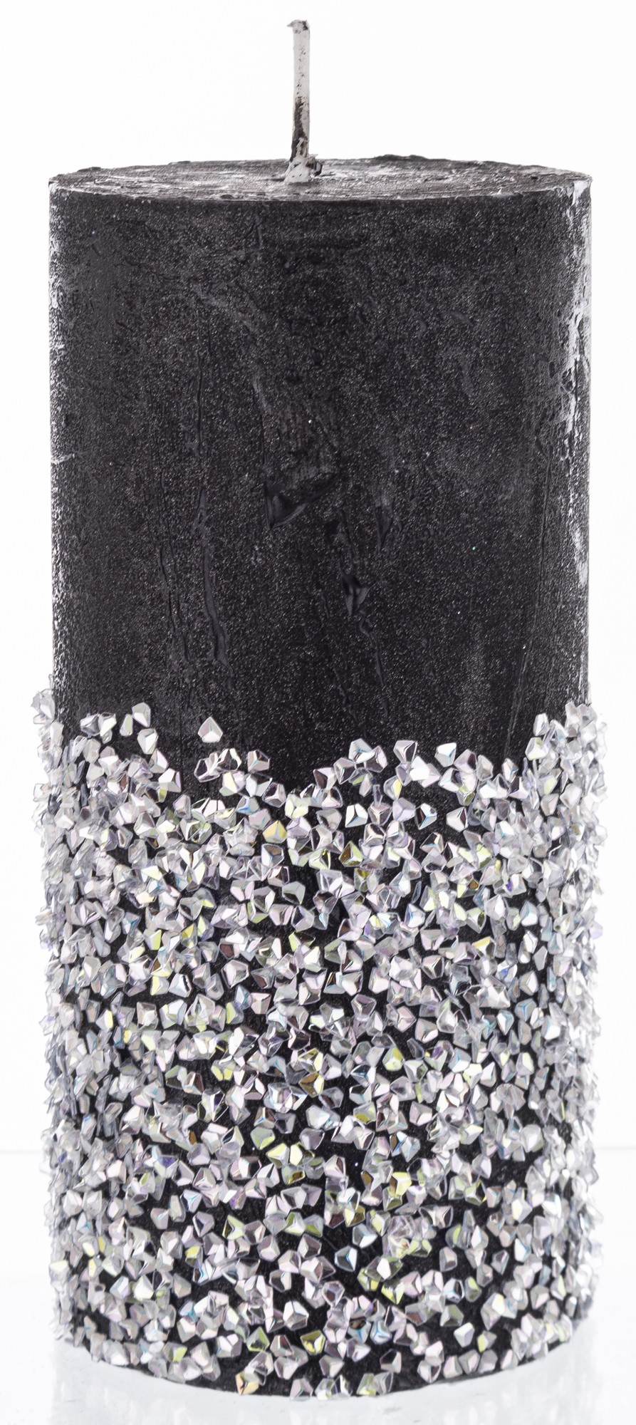 stredná valcová sviečka diamantová čierna strieborná