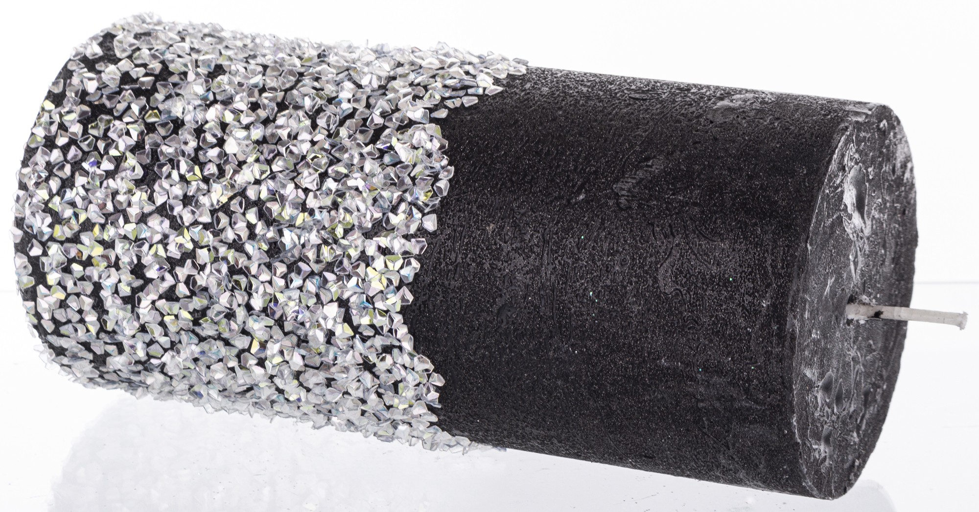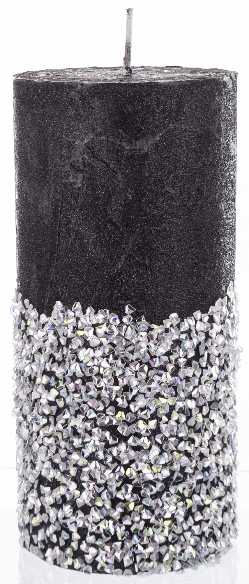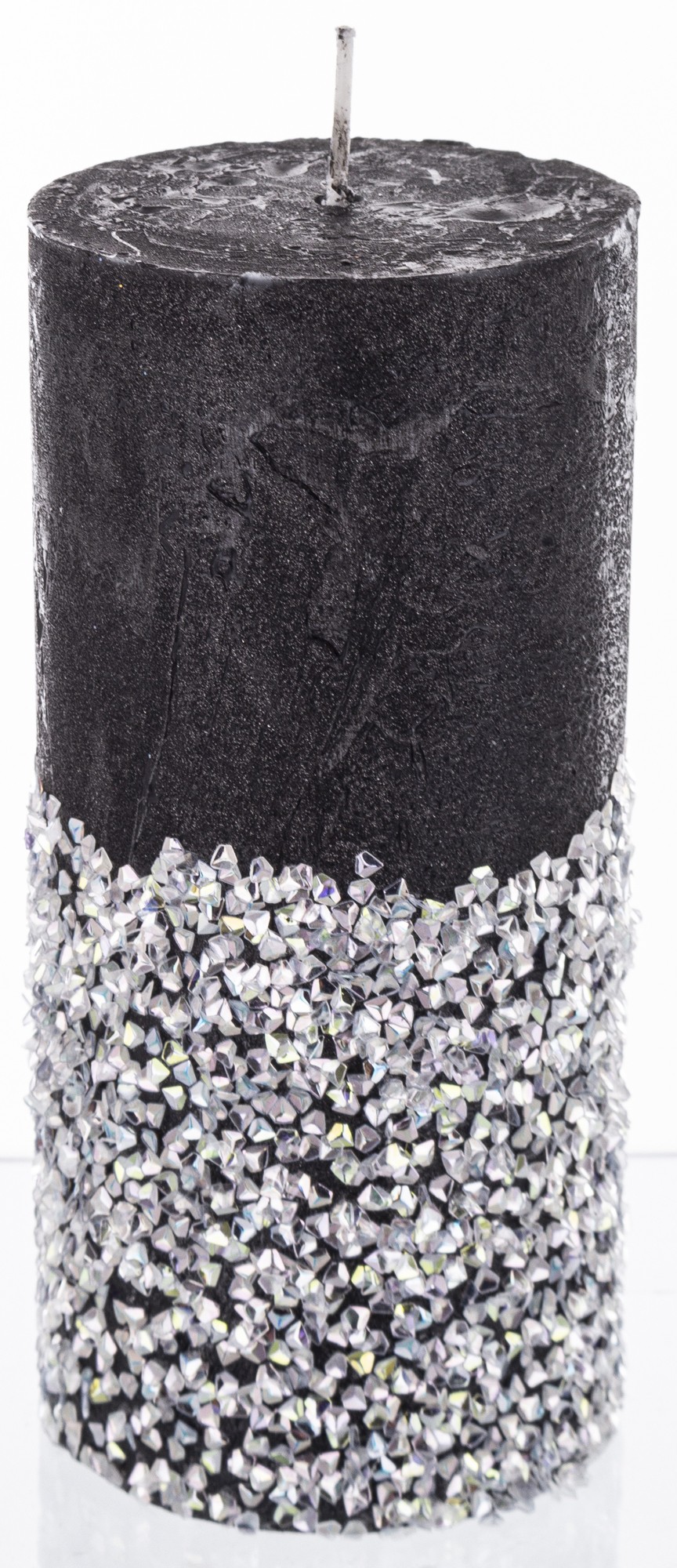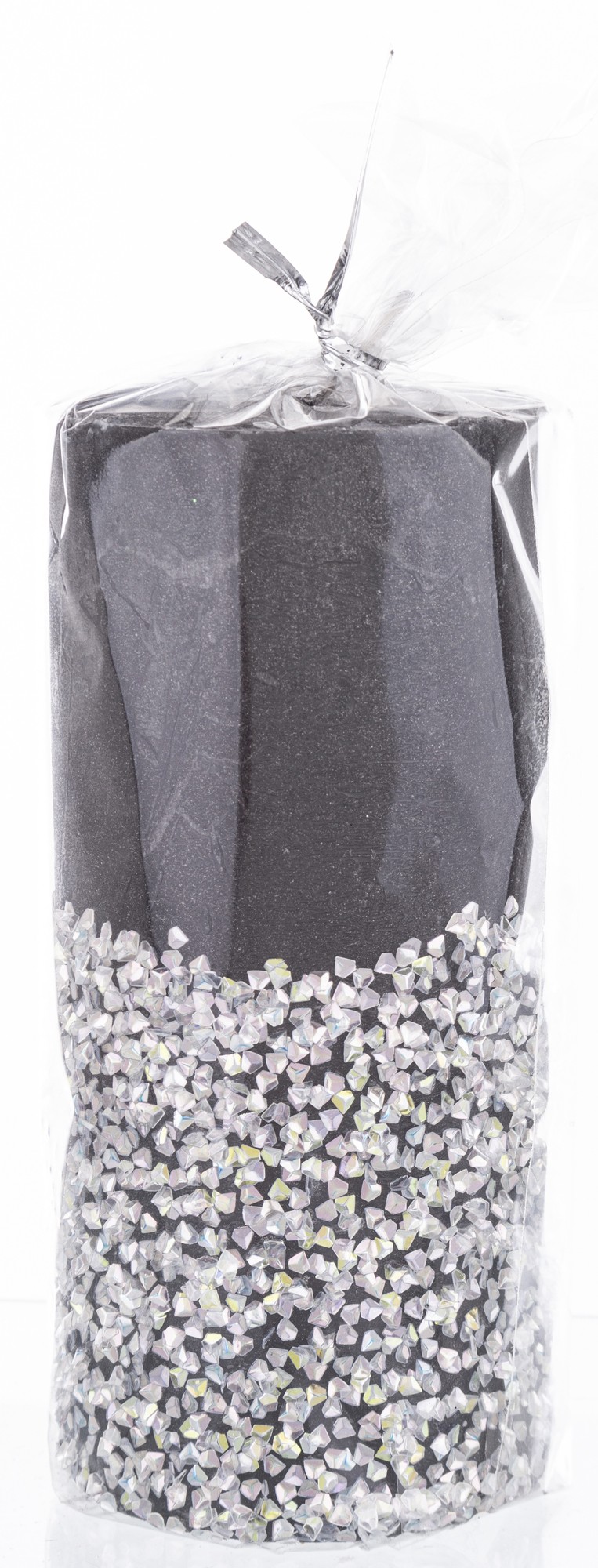 stredná valcová sviečka diamantová čierna strieborná