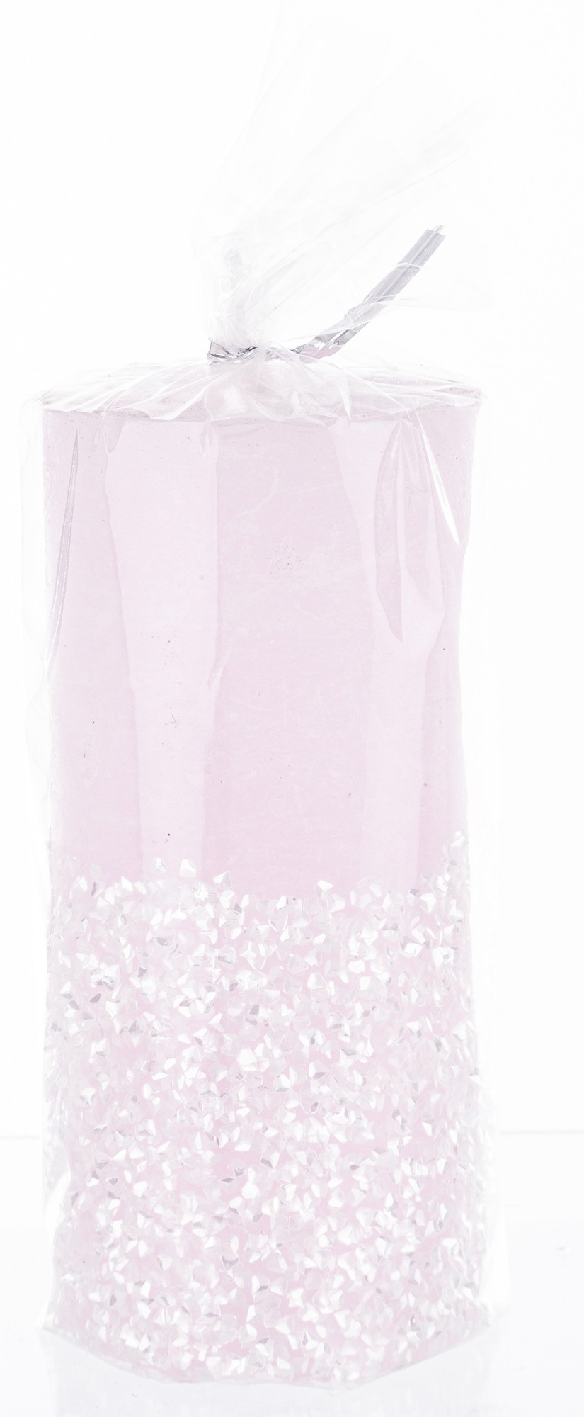stredná valcová sviečka diamantová ružová strieborná