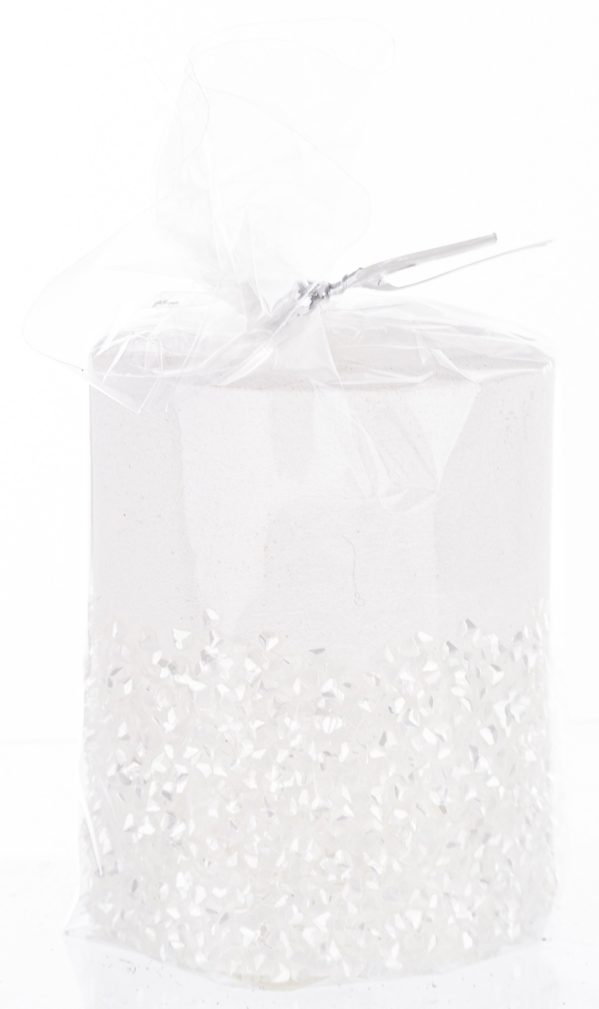 Sviečka valčeková malá diamantová biela biela strieborná