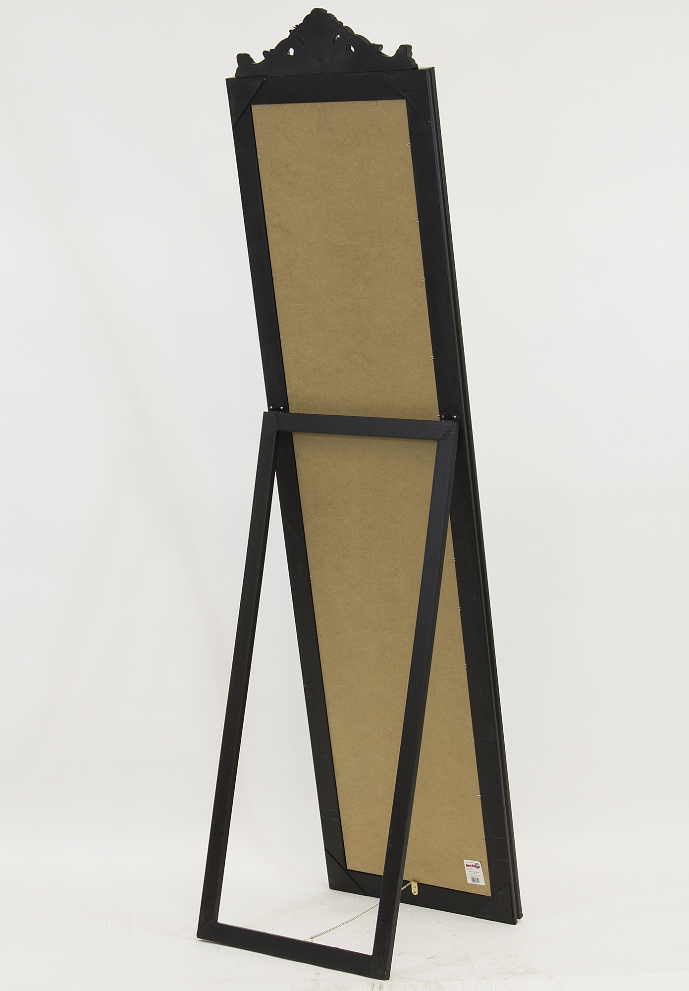 Veľké stojanové zrkadlo s čiernym ozdobným rámom